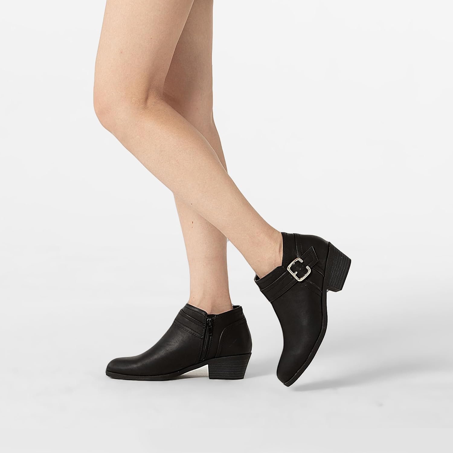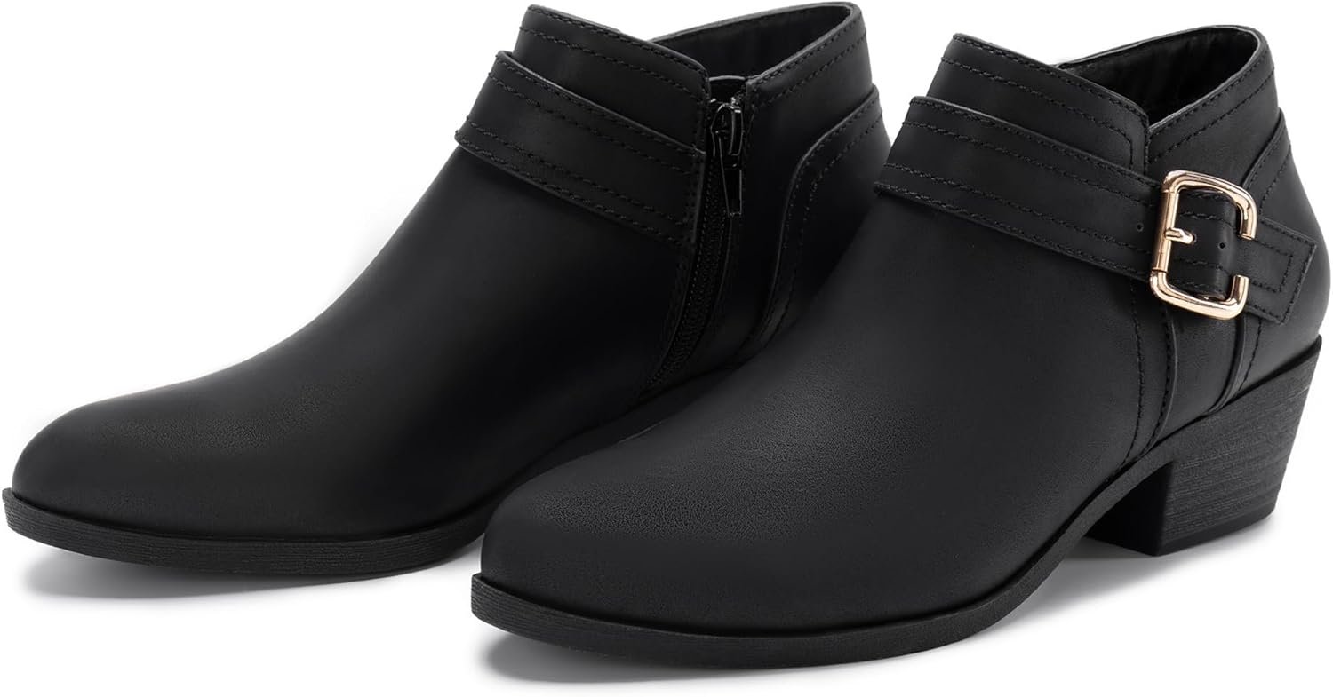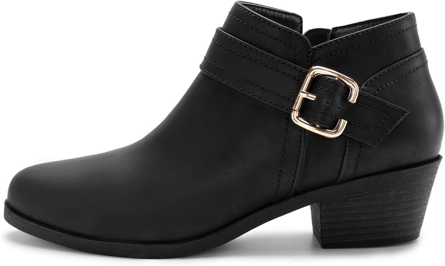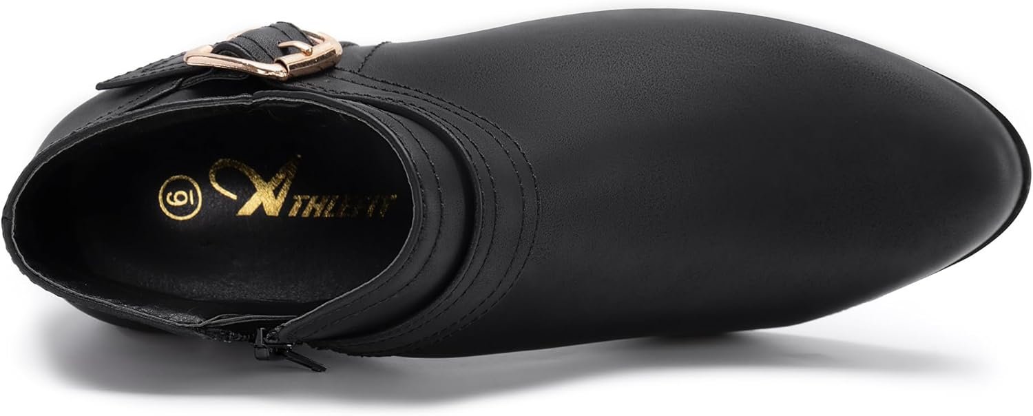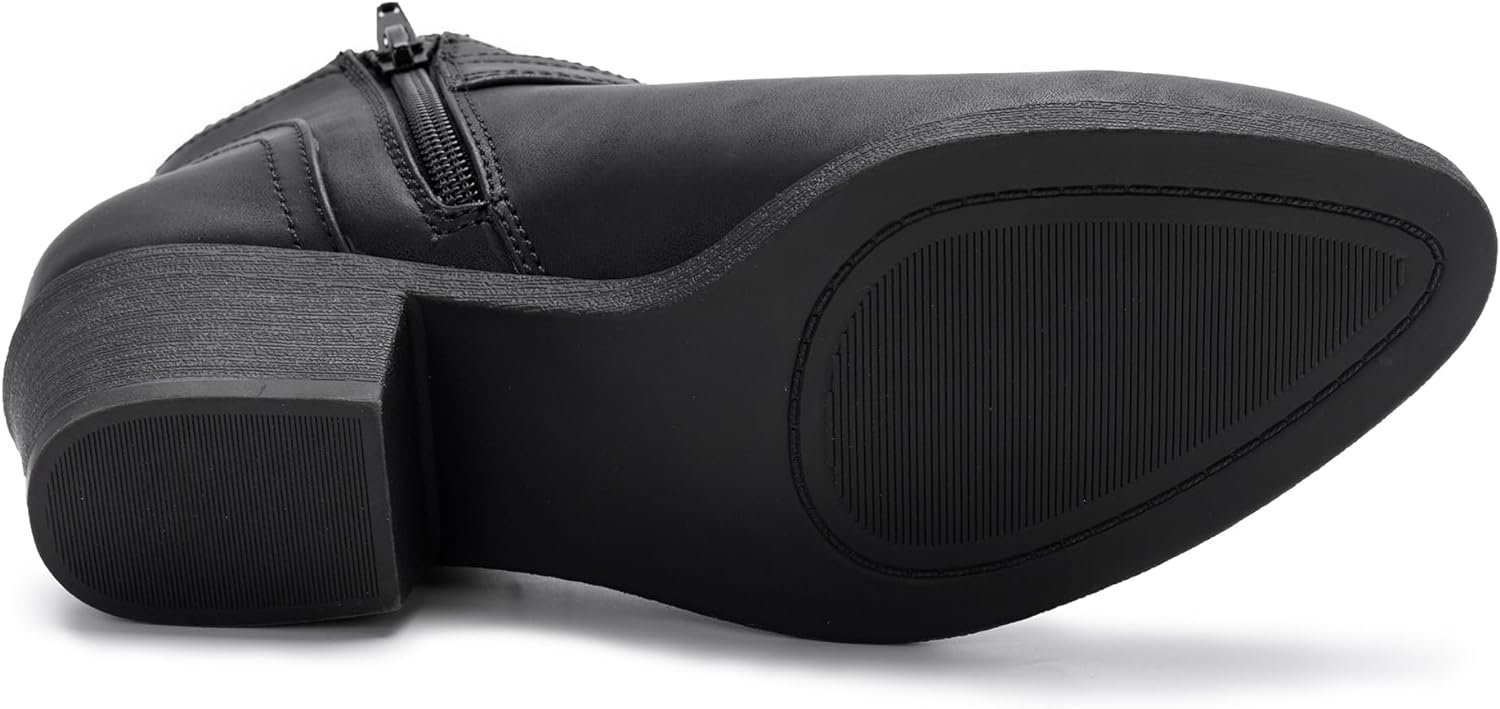 Athlefit Women’s Chunky Low Heel Ankle Boots Classic Pointed Toe Side Zipper Booties