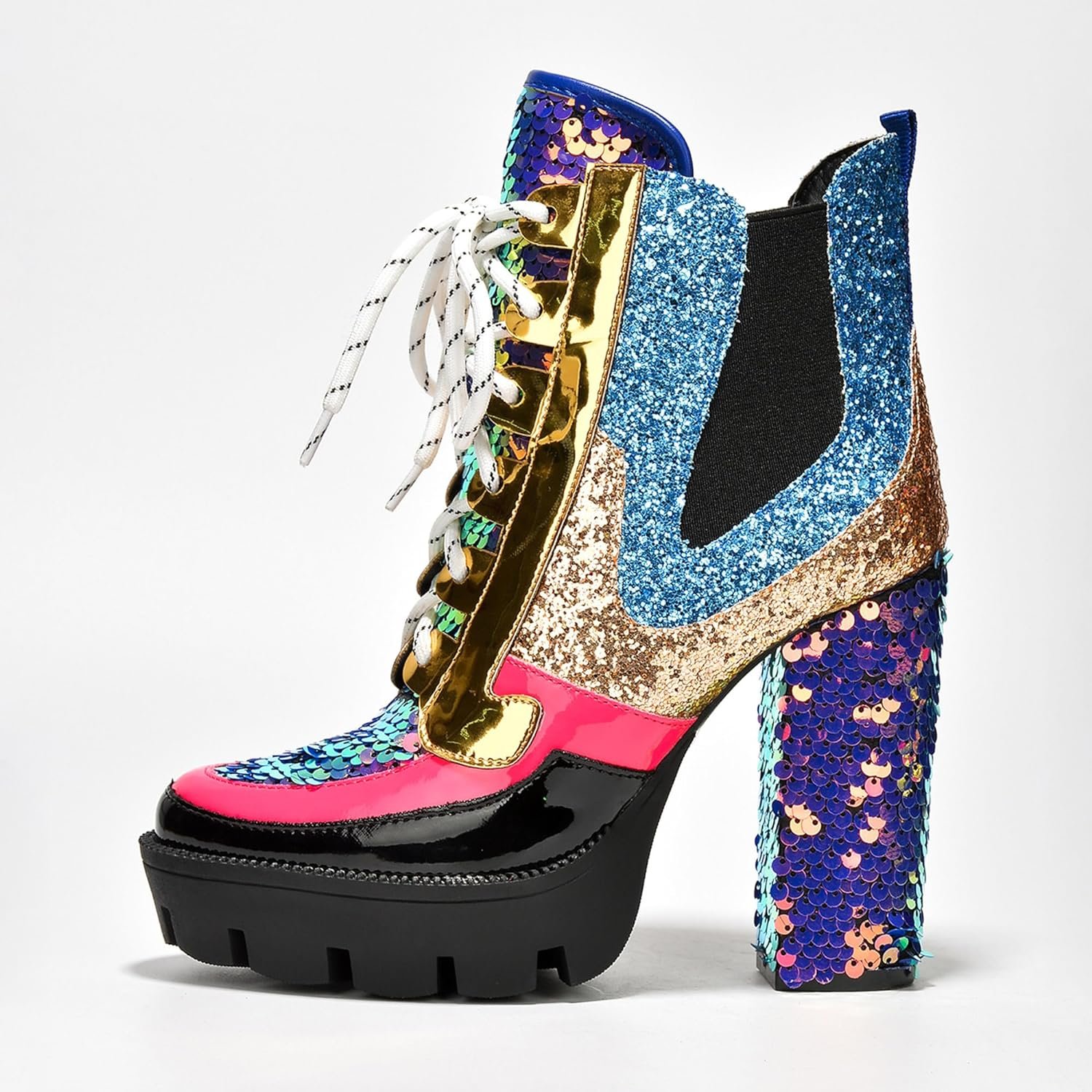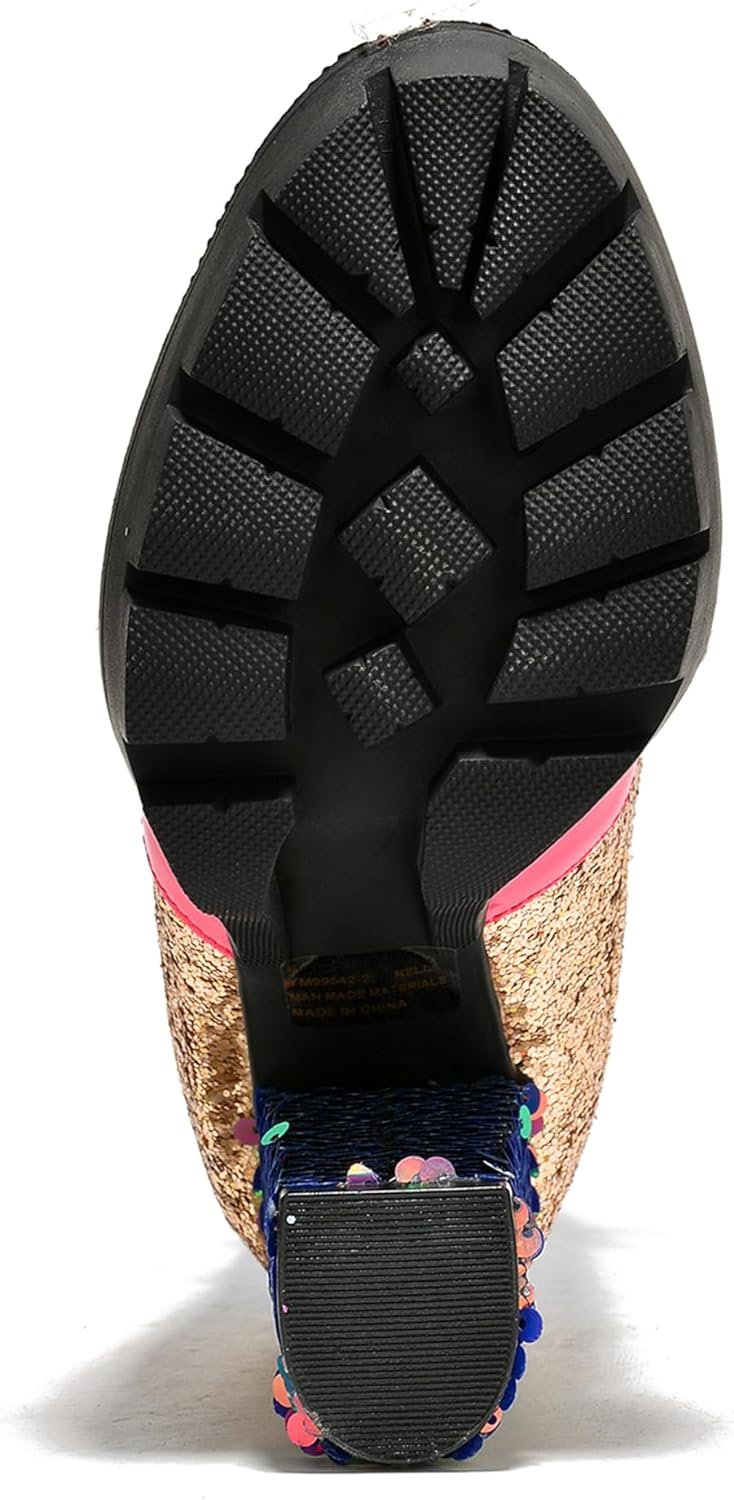 Cape Robbin Nell Ankle Boots for Women, Sparkly Booties for Women, Chelsea Boots with Chunky Block Heels for Women, Glitter Ankle Boots