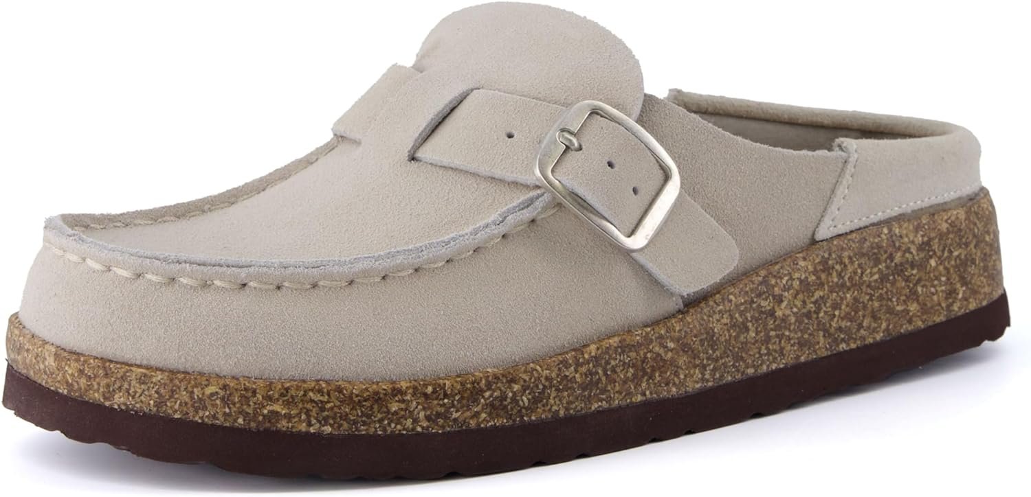 CUSHIONAIRE Women’s Hobby Genuine Leather Cork footbed clog with +Comfort