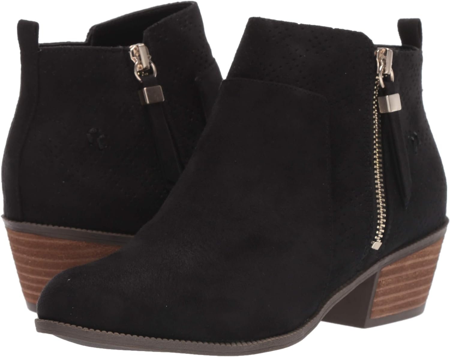 Western-inspired with modern flair. This comfortable bootie is full of style and personality. Microfiber upper. Almond toe. Outside zip closure with back pull tab. Perforated accents. Be Energized insole with all-day comfort, cushioning and shock absorption designed to reduce foot pressure & fatigue. Flexible, durable sole. 1 and 3/4 inch cru stack heel.