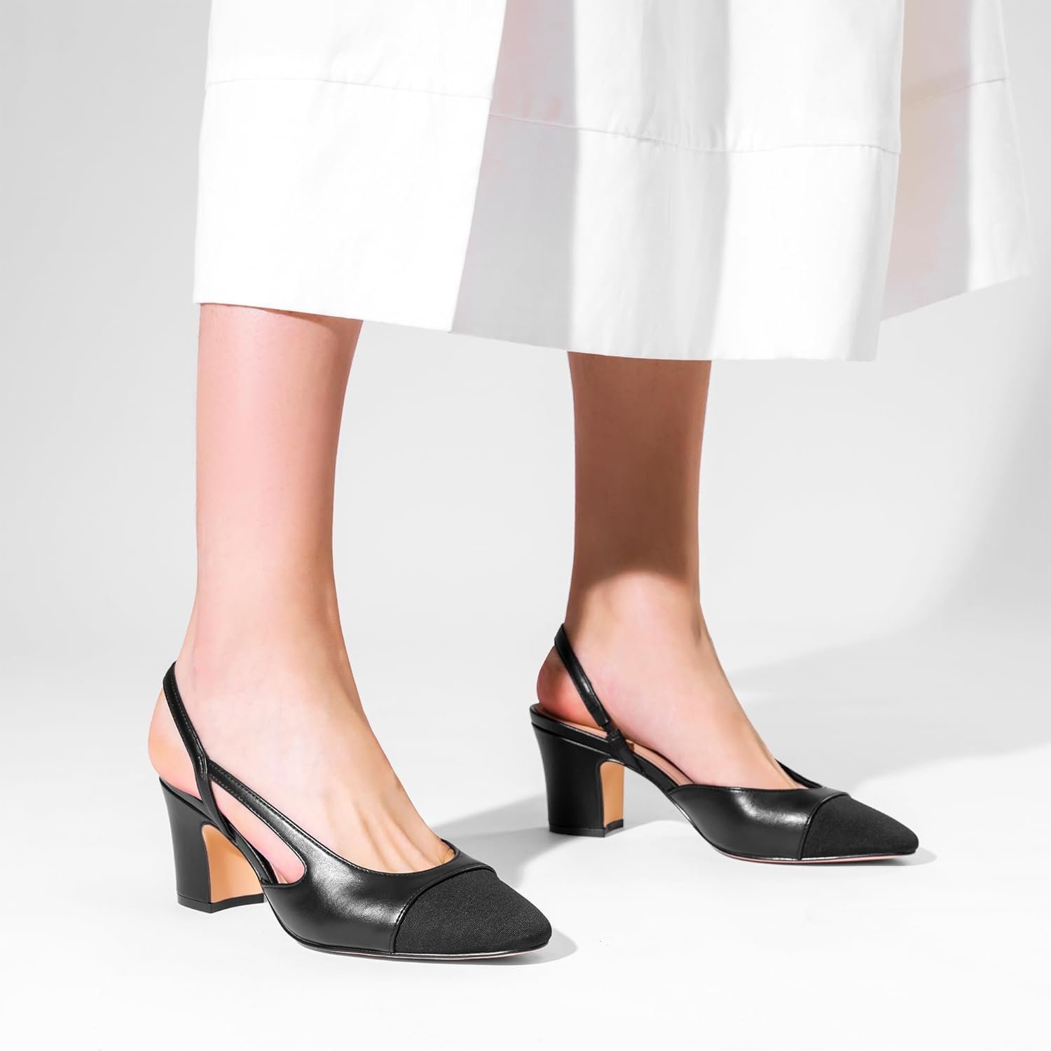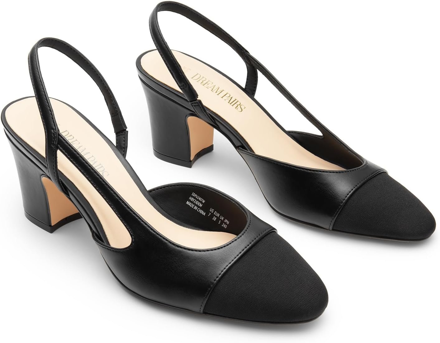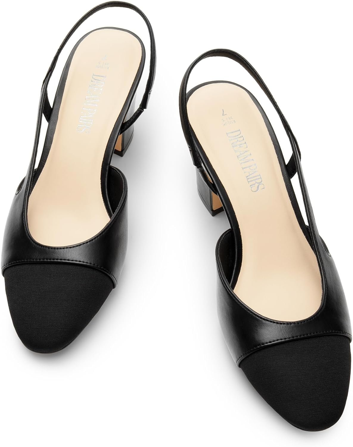 DREAM PAIRS Women’s Closed Round Toe Low Chunky Heels Block Slingback Splicing Fashion Comfortable Casual Pumps Shoes