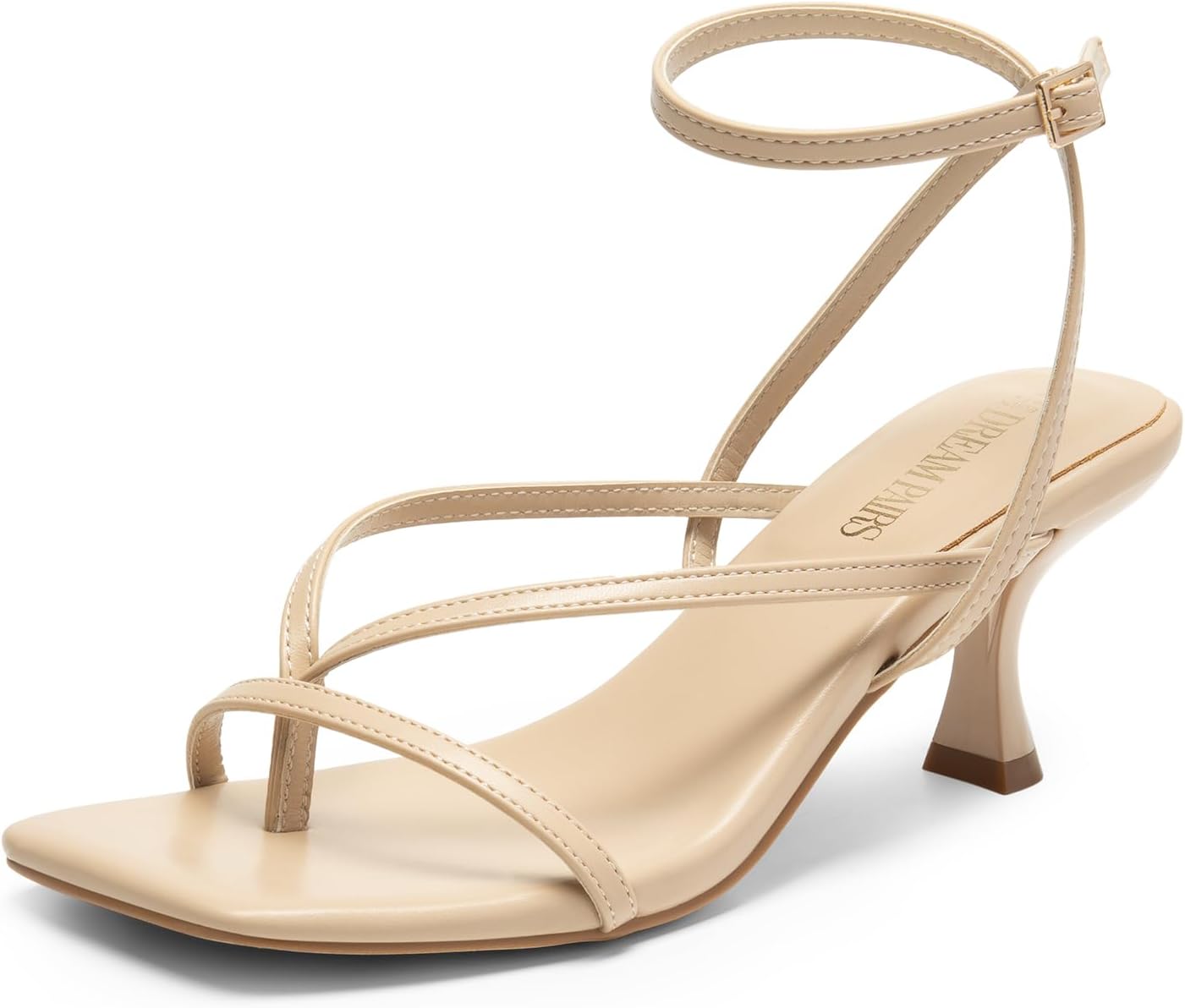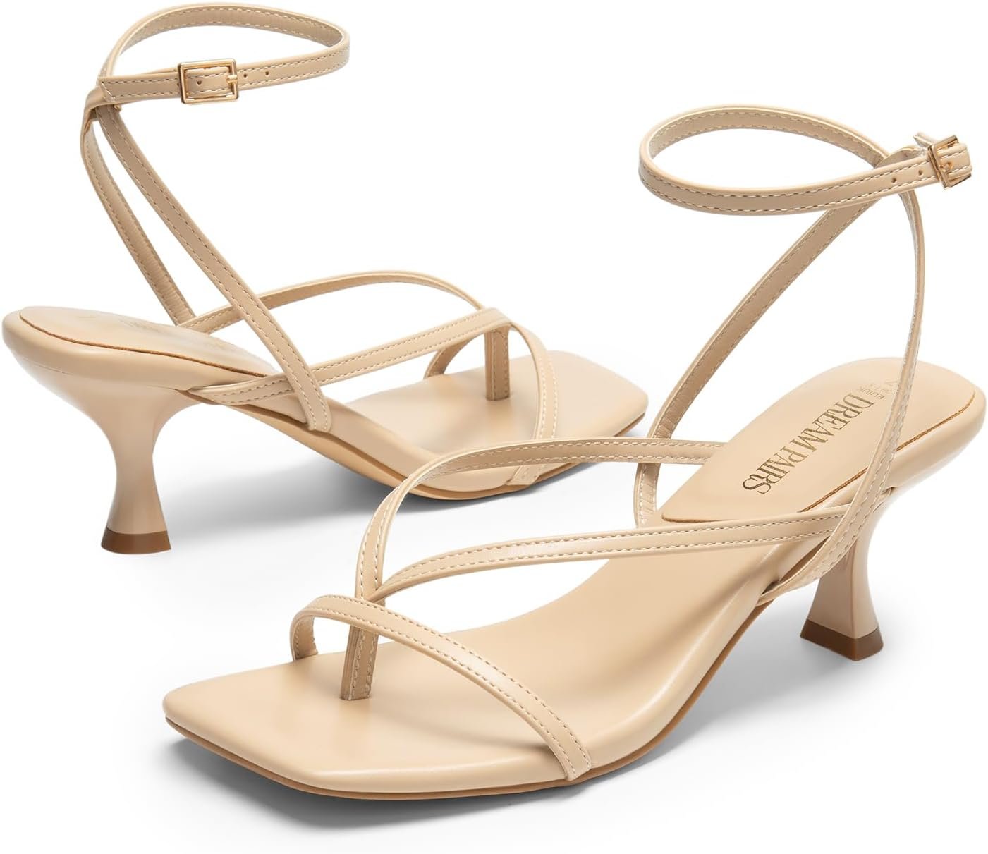 DREAM PAIRS Women’s kitten Low Strappy Lace Up Heels for Women Open Square Toe Thong Ankle Strap Heels Sexy Fashion Comfort Dress Shoes Party Pumps Heeled Sandals