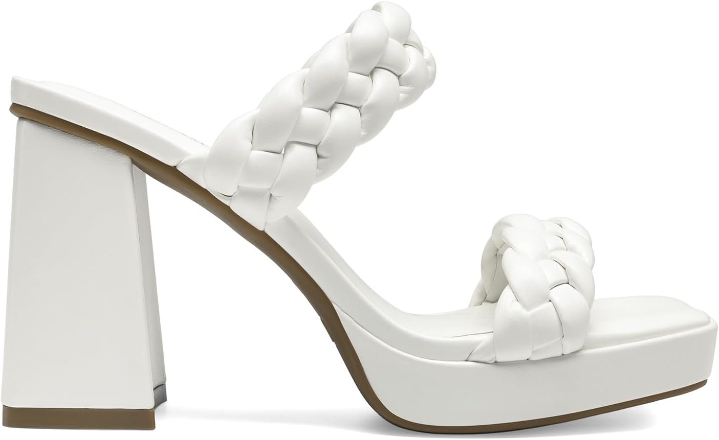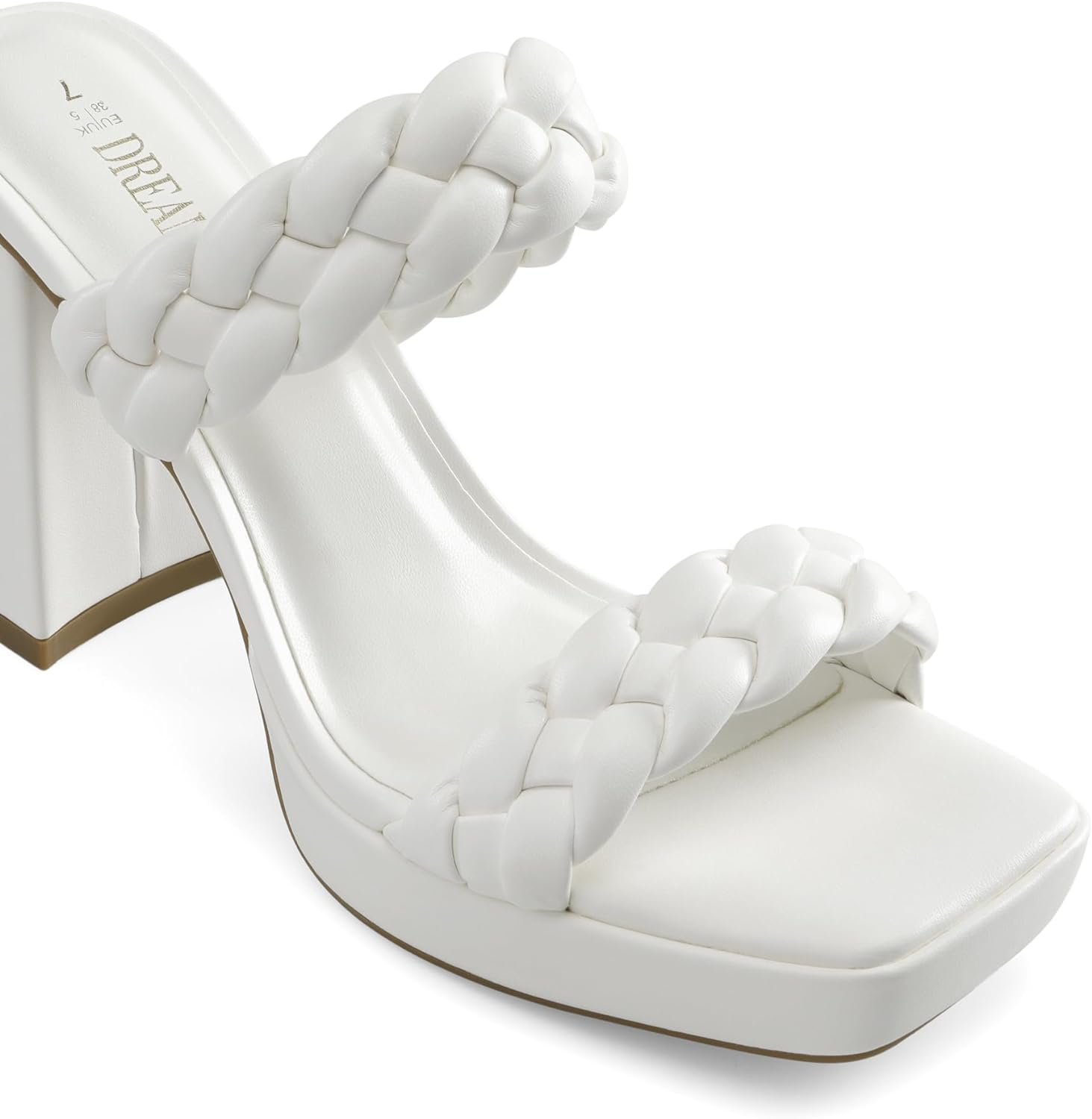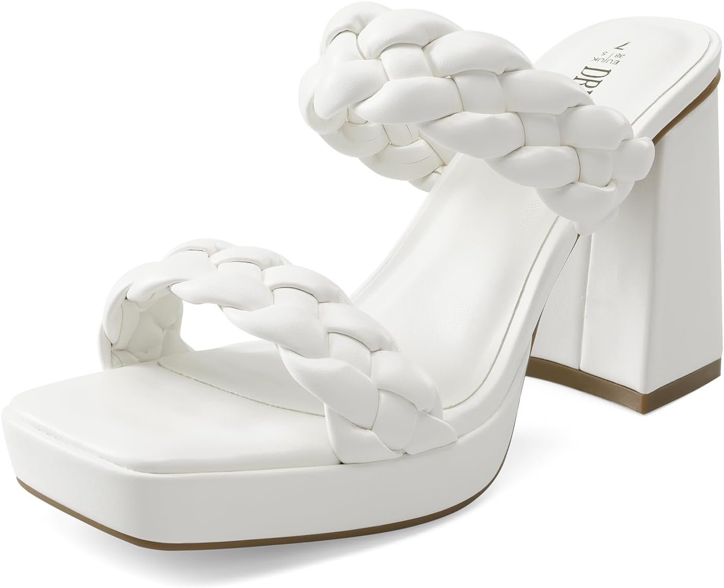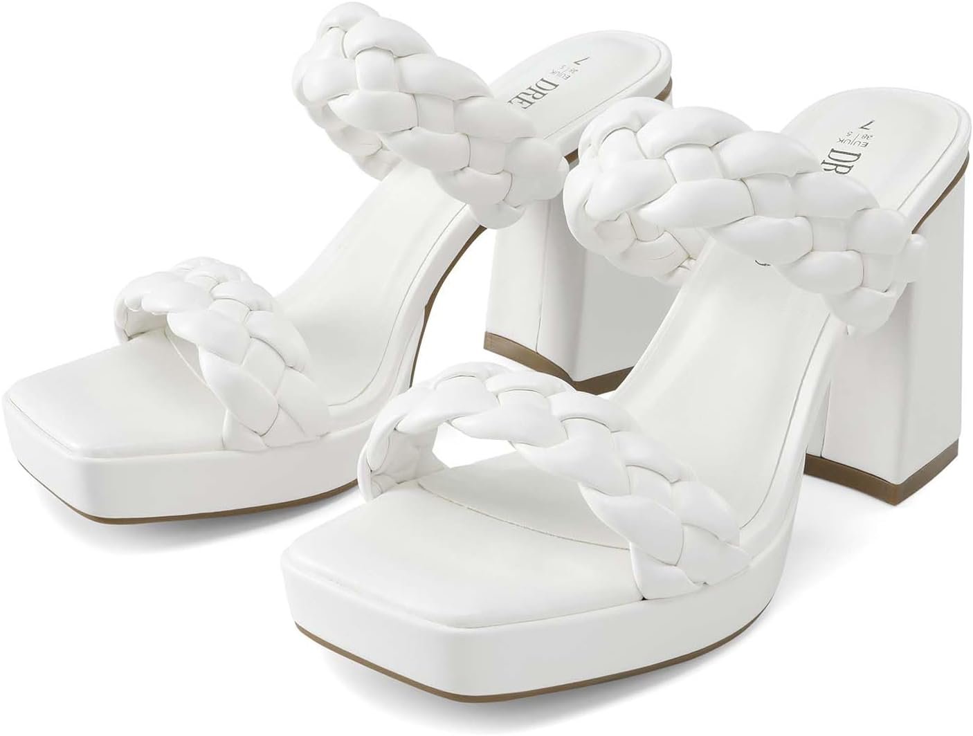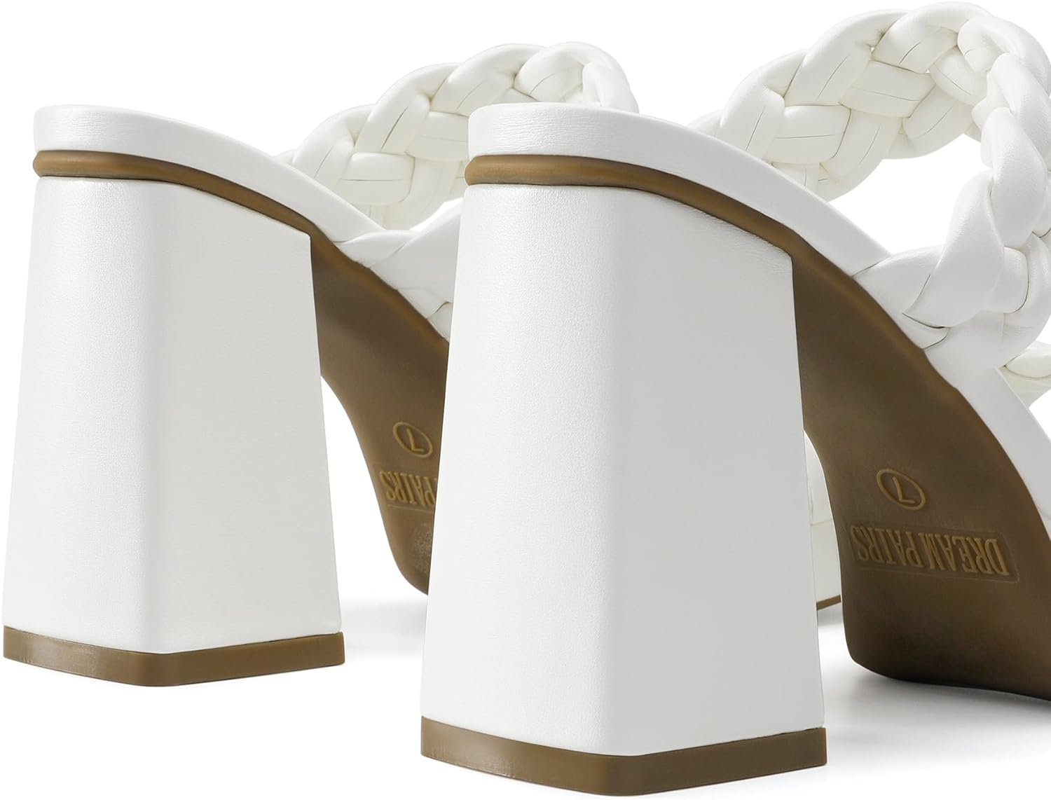 DREAM PAIRS Women’s Two Braided Strap High Chunky Heels for Women Slip on Open Square Toe Block Platform Heels Sandals Holiday Party Wedding Dress Pumps Shoes