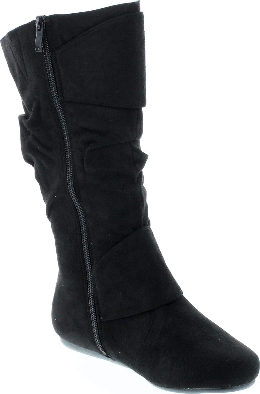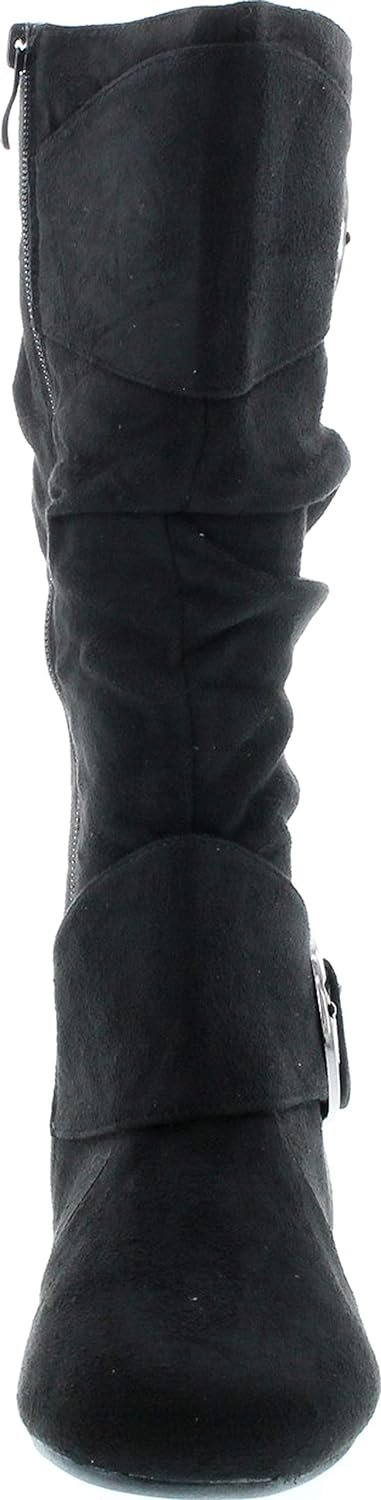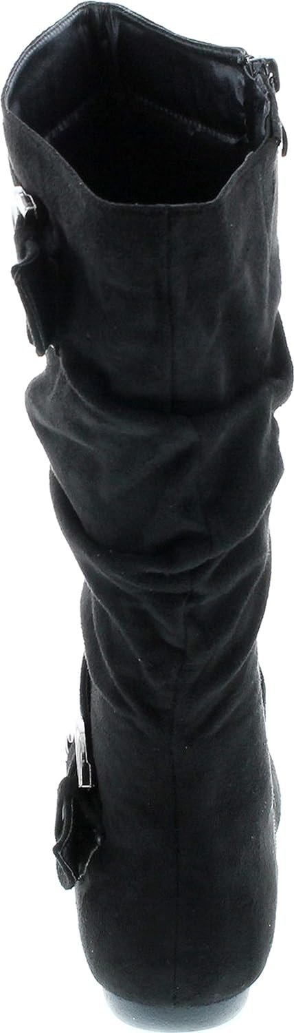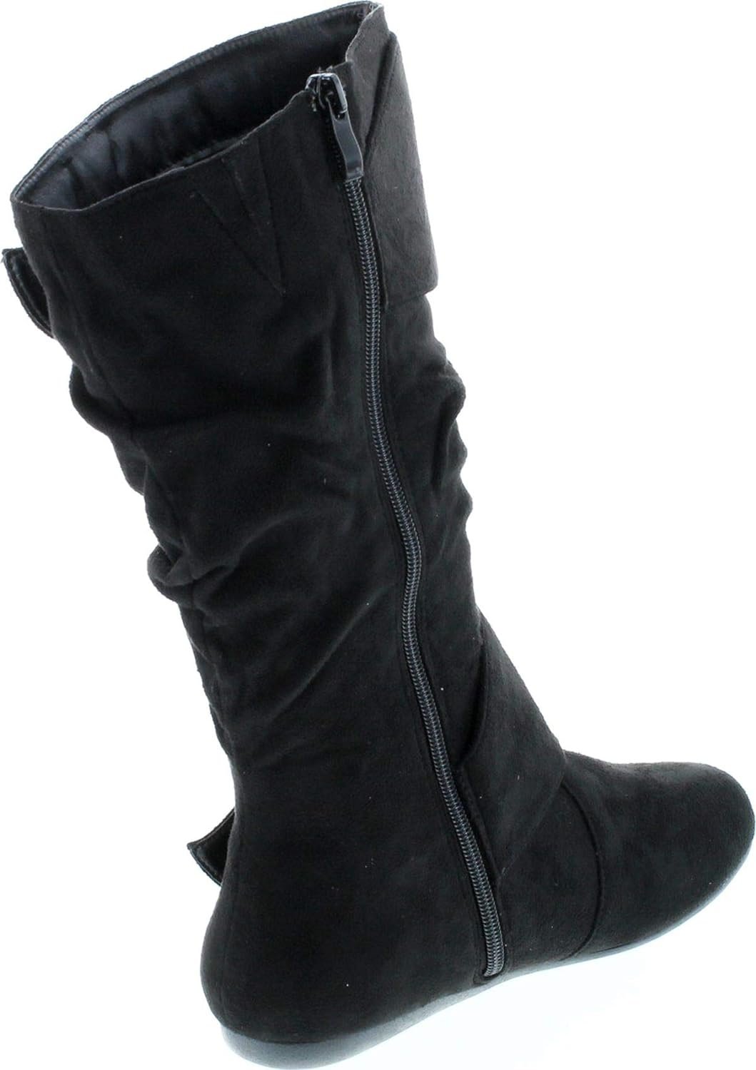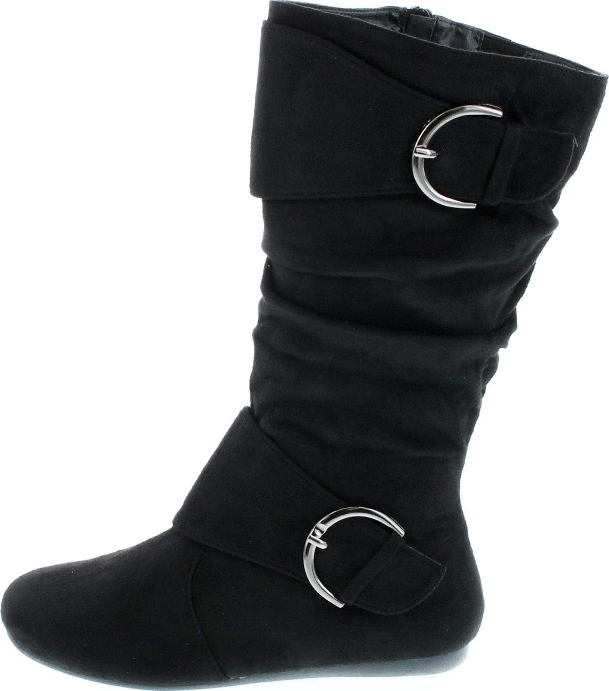 Forever Link Women’s Klein-70 Closed Round Toe Buckle Slouch Flat Heel Mid-Calf Boot