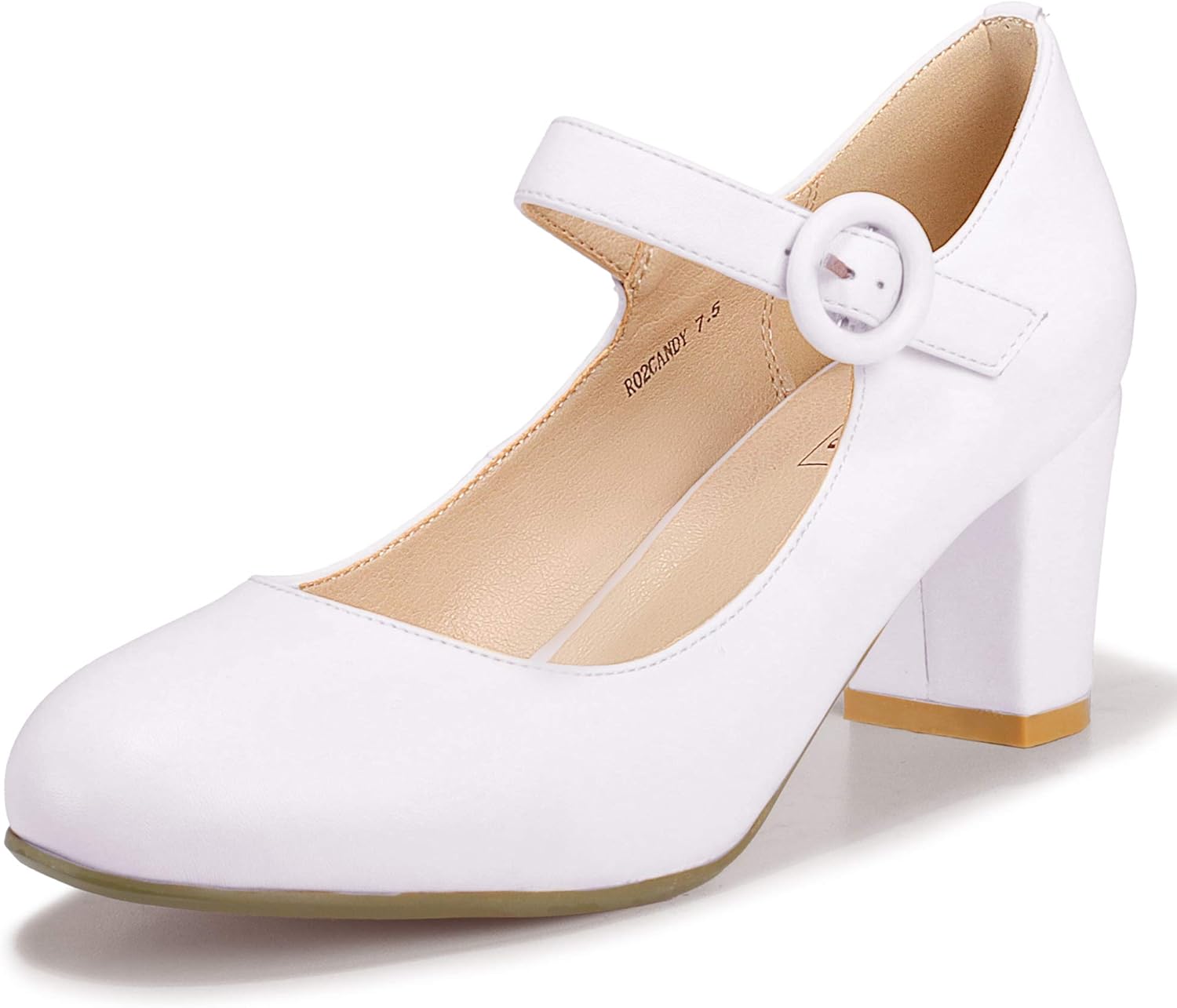 IDIFU Women’s Candy Dress Mary Jane Shoes Low Block Heels Closed Round Toe Office Work Church Wedding Pumps