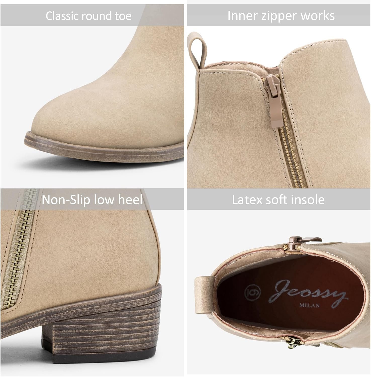 Jeossy Women’s Ankle Boots Thick Heel Low Heeled Booties for Women