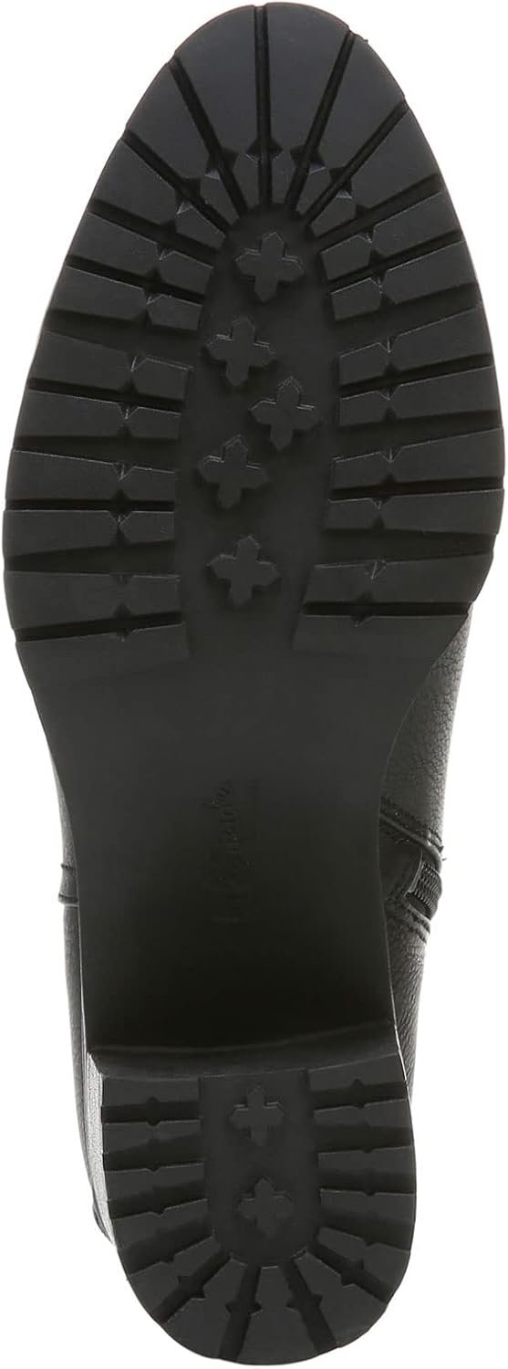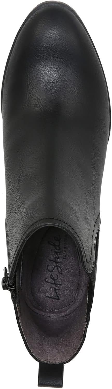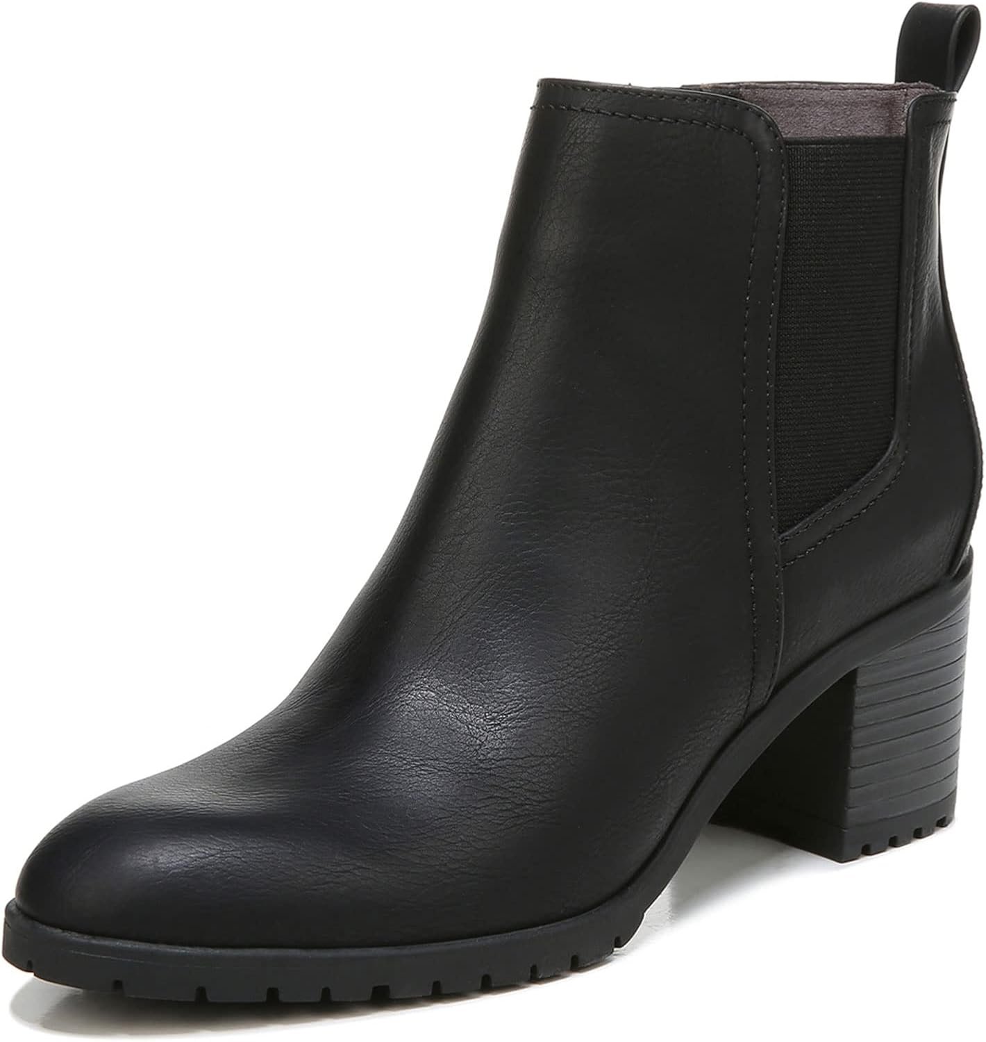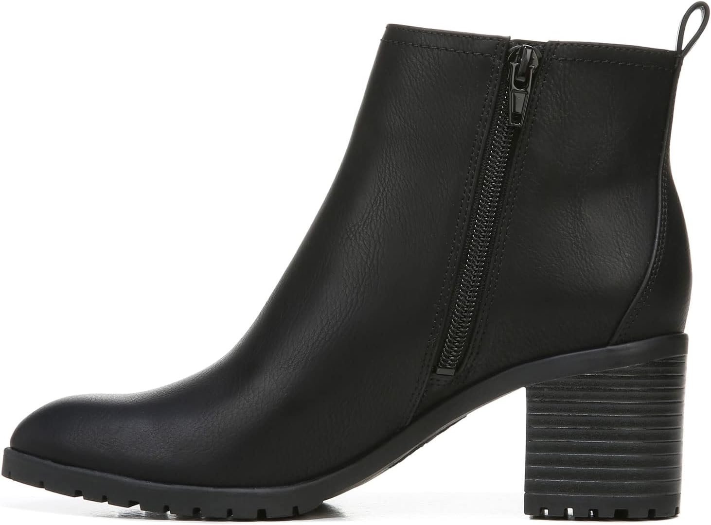 Sleek and sophisticated, this flexible boot pairs with everything from denim to dresses. Faux leather upper with round toe, inside zipper, back pull tab, stretch gore panel, and burnished design. Toe box, heel counter, and insole board crafted with recycled materials.