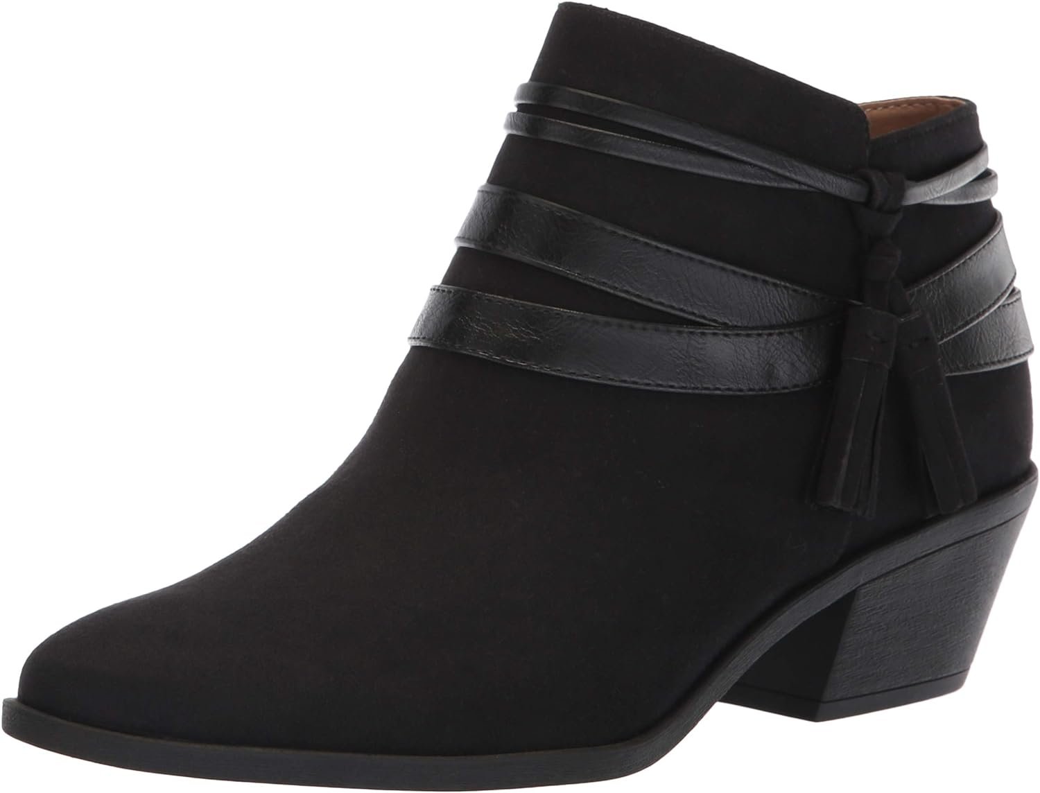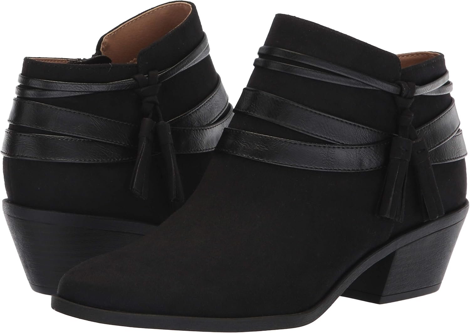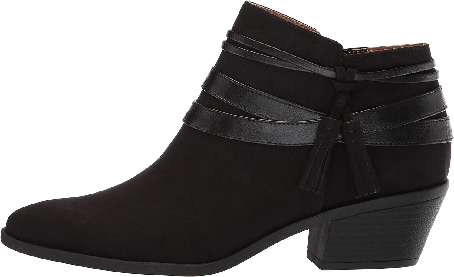 Present your best look with the Paloma bootie from LifeStride. Microsuede upper in a bootie style with an almond toe. Side zipper entry. Wraparound western tassel straps. Soft system comfort package offers support and flexibility. Soft lining with a cushioned comfort footbed. Durable traction outsole. 1 and 1/2 stacked block inch heel.