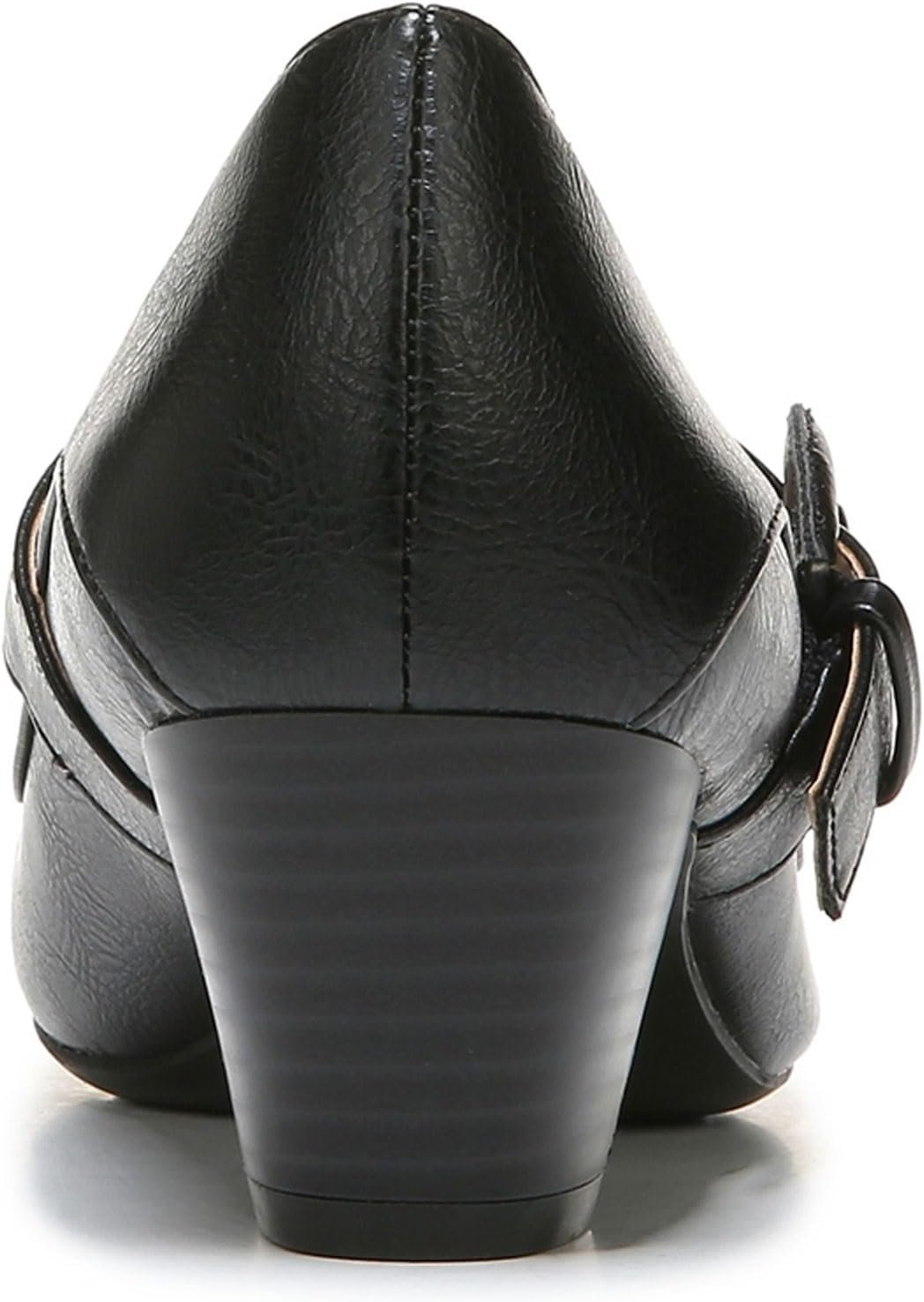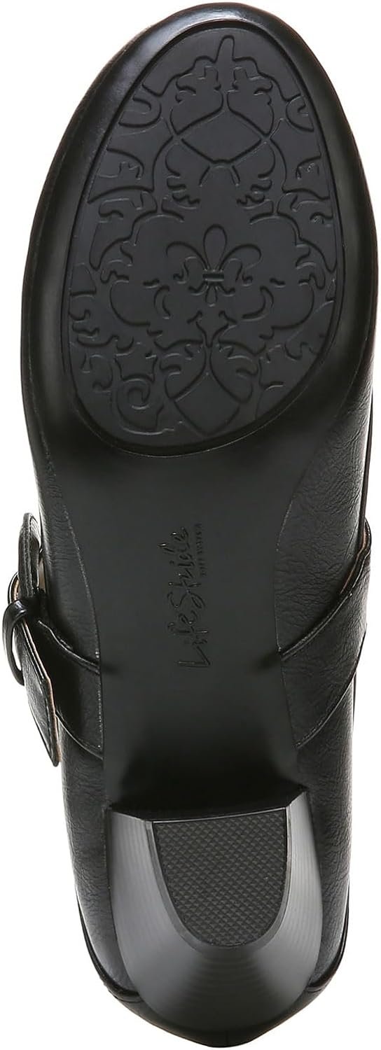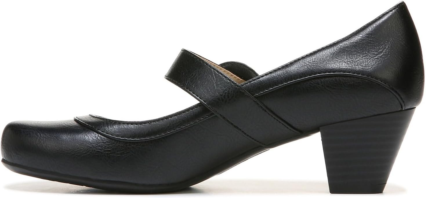 Always chic and sophisticated, this mary jane pump is a year-round favorite. Faux leather upper with a round toe, slip-on fit, and mary jane-style strap with adjustable buckle accent. Just right height 1 and 7/8 inch heel.