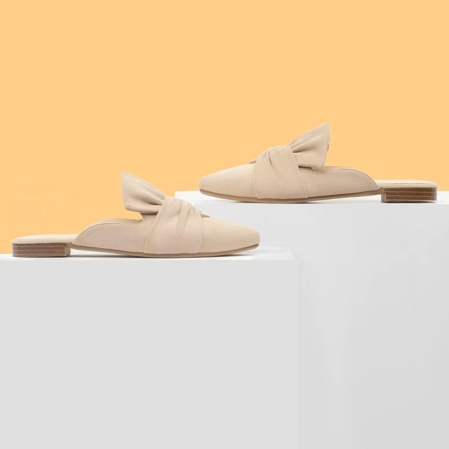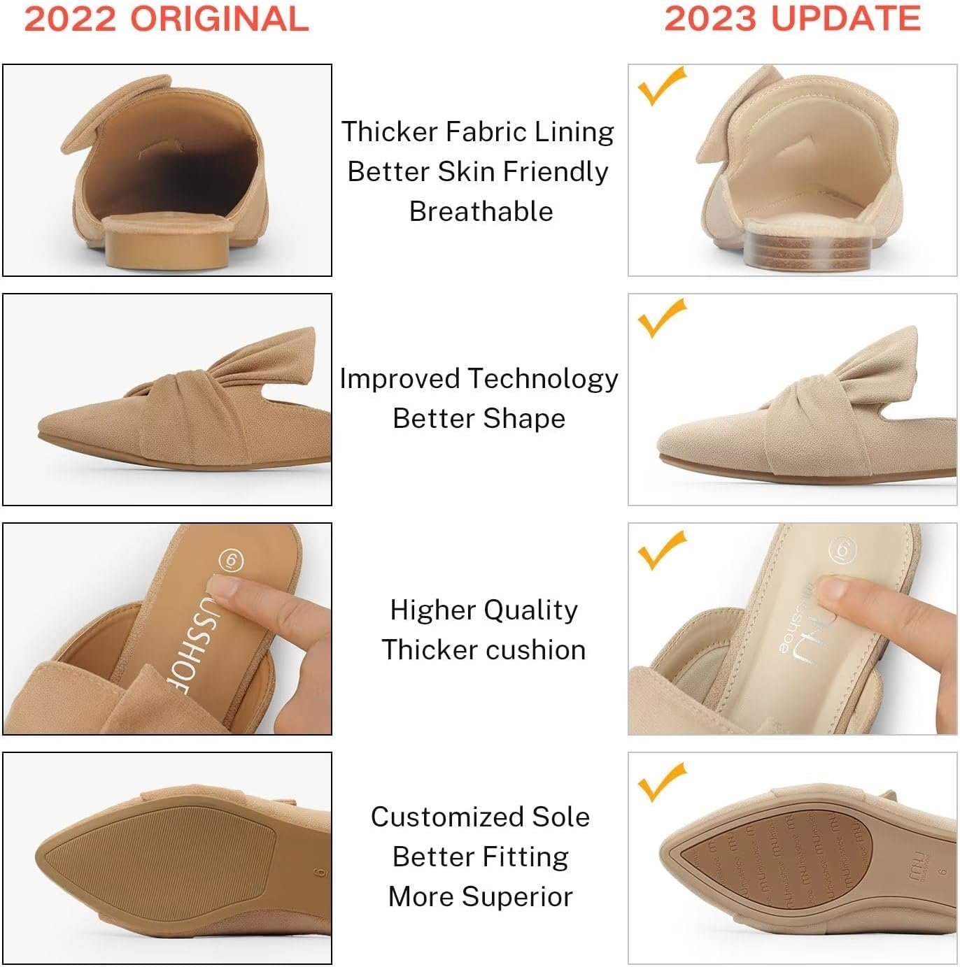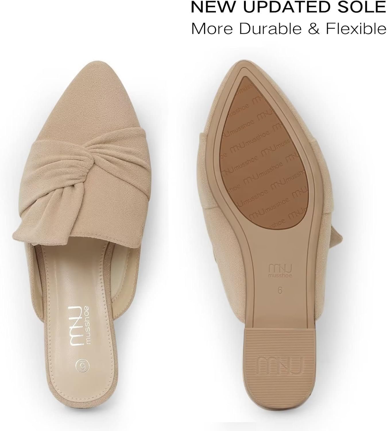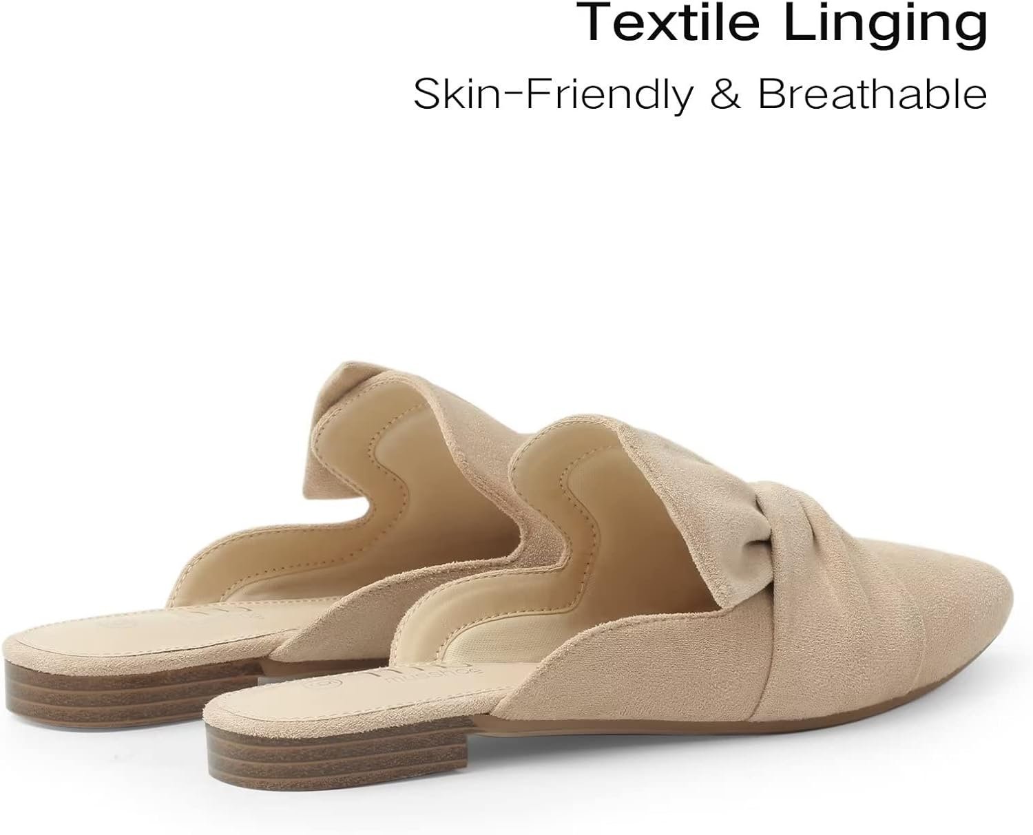 MUSSHOE Women Mules Slip On Comfortable Pointed Toe Mules for Women Flats with Knot