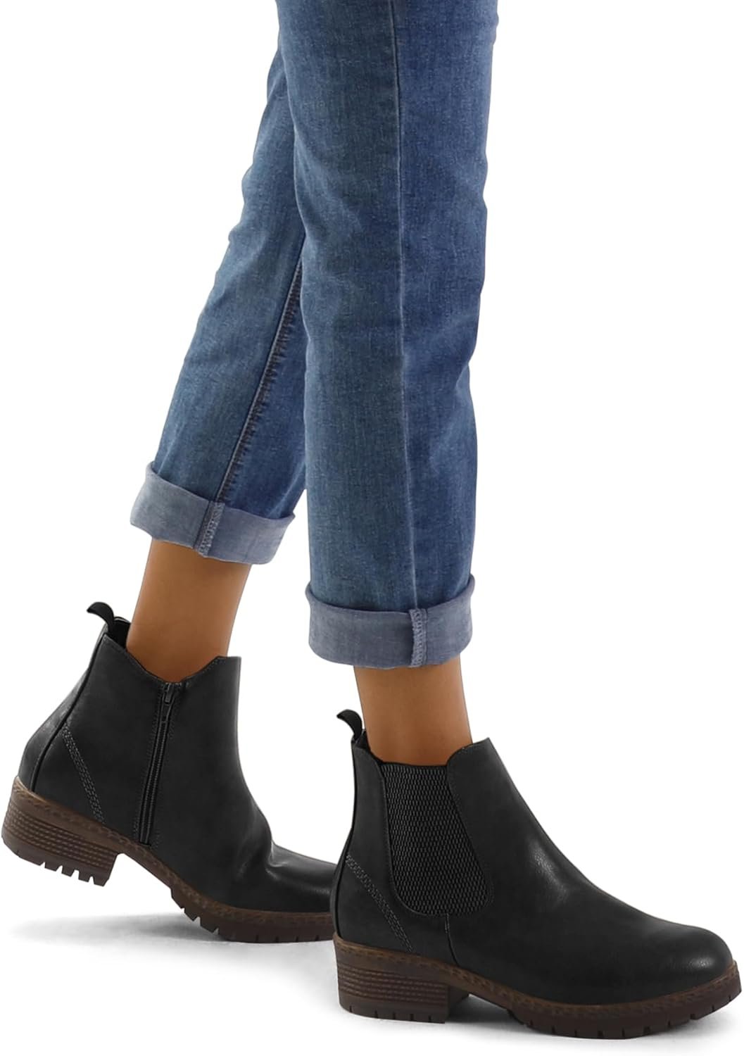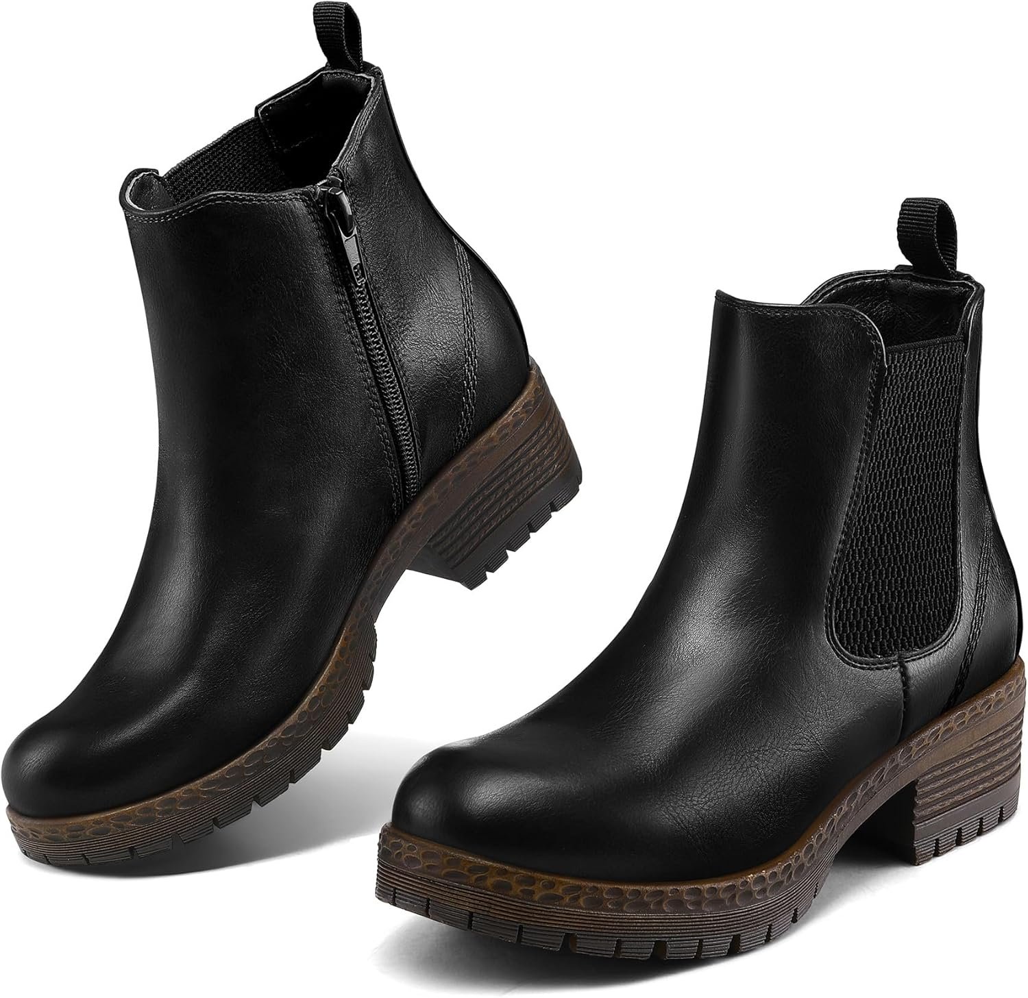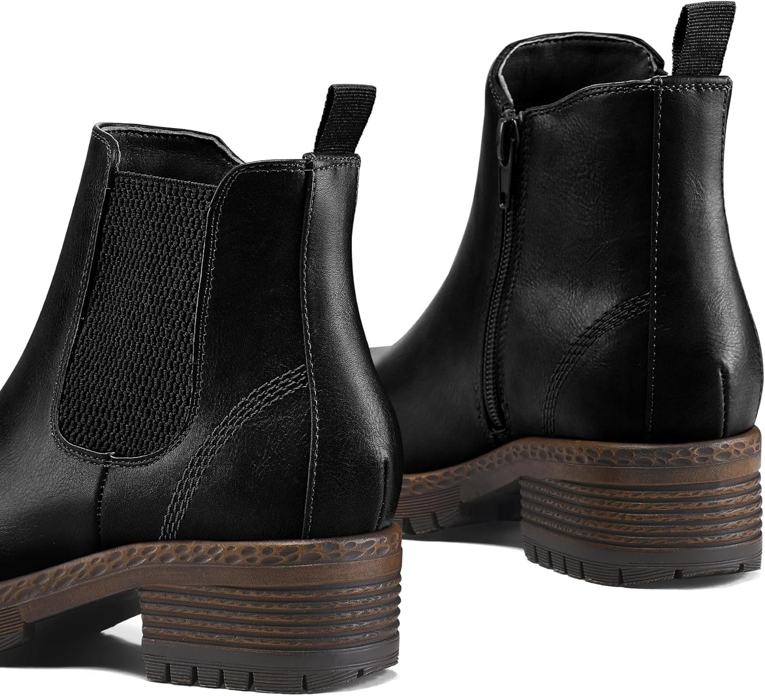 mysoft Women’s Chelsea Ankle Boots Side Zipper Chunky Block Low Heel Booties Lug Sole Short Boots