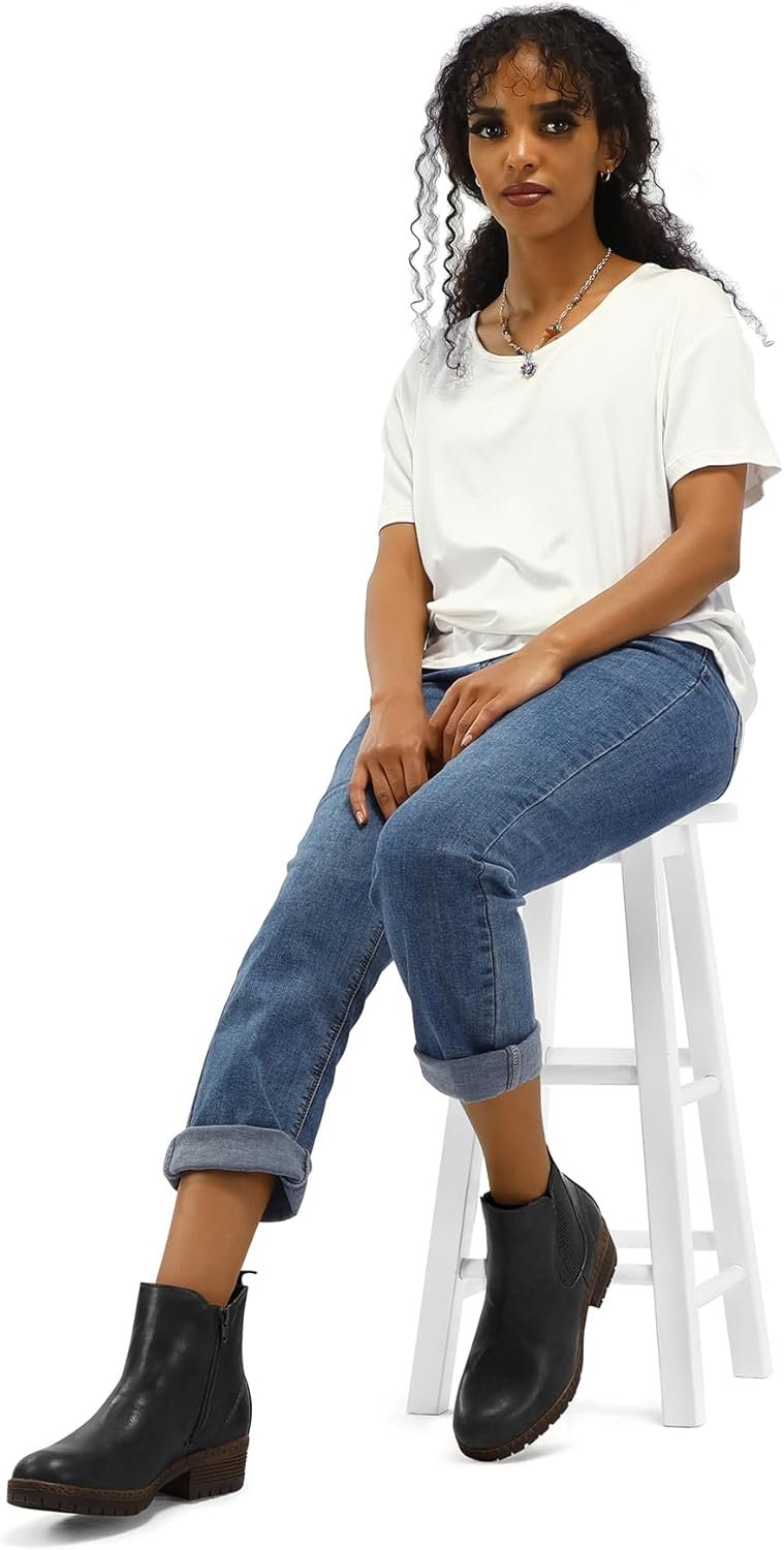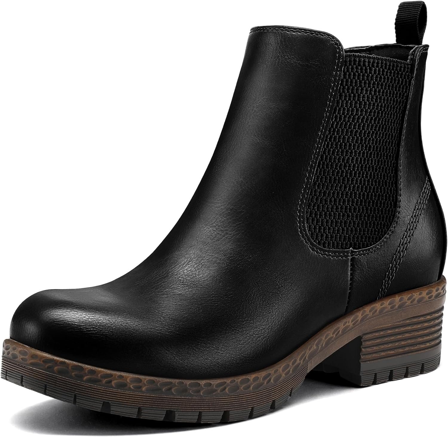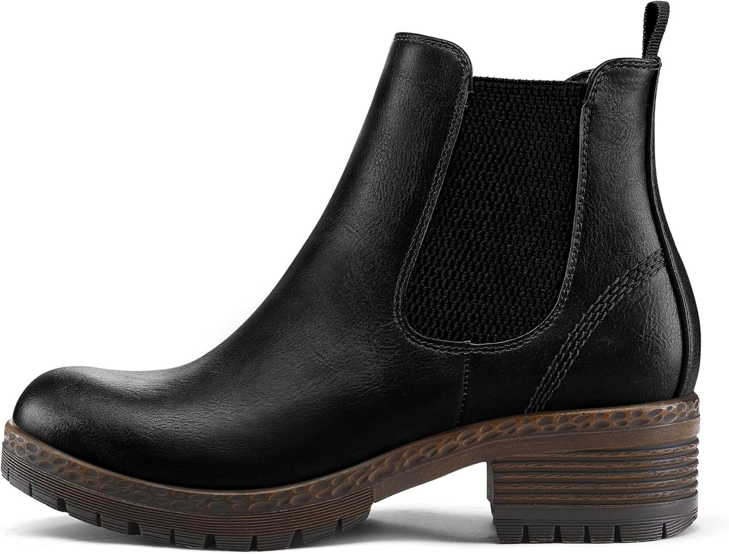 mysoft Women’s Chelsea Ankle Boots Side Zipper Chunky Block Low Heel Booties Lug Sole Short Boots