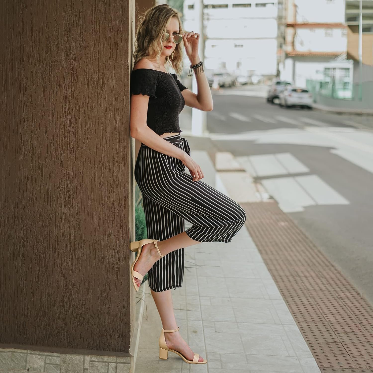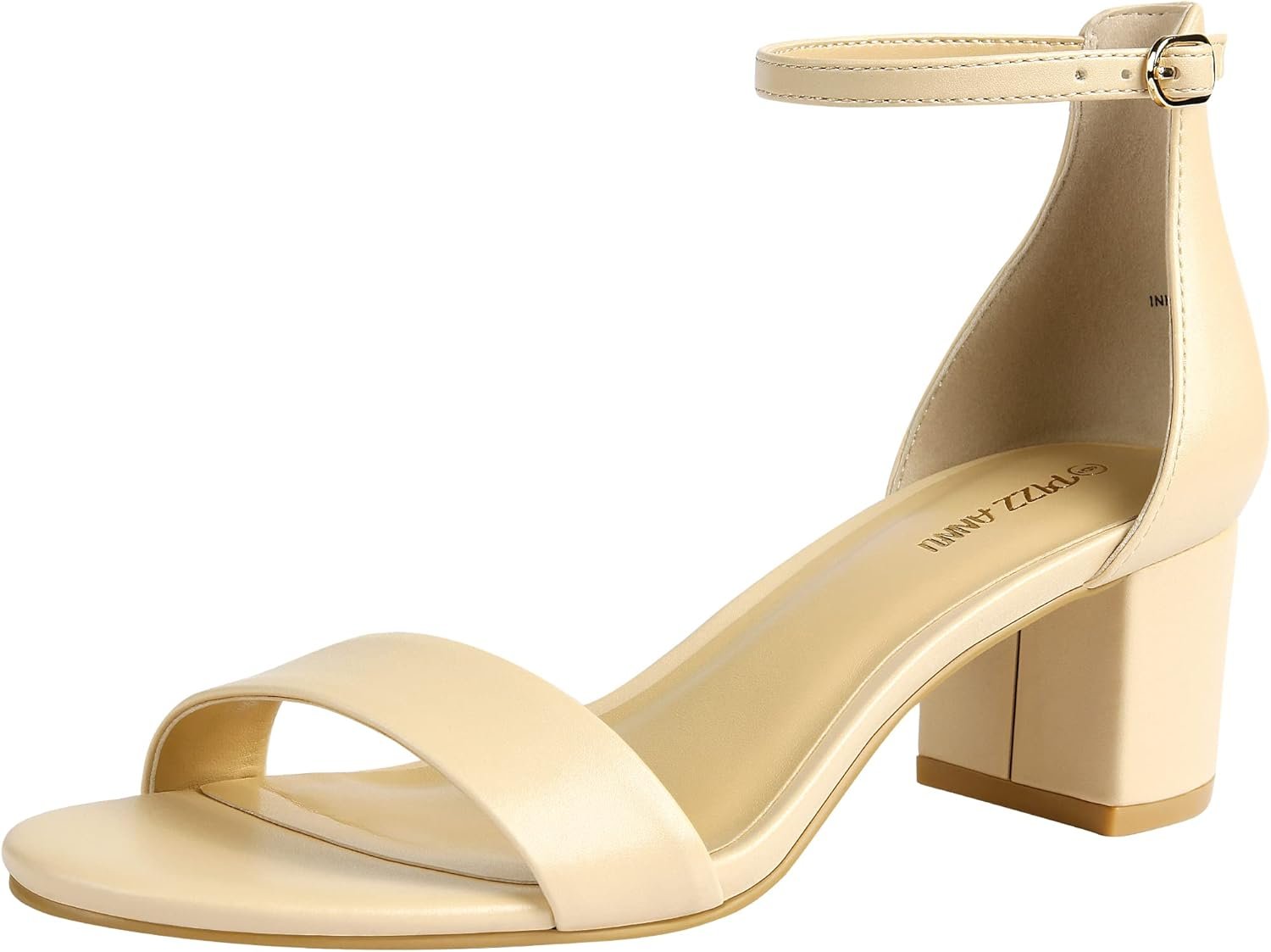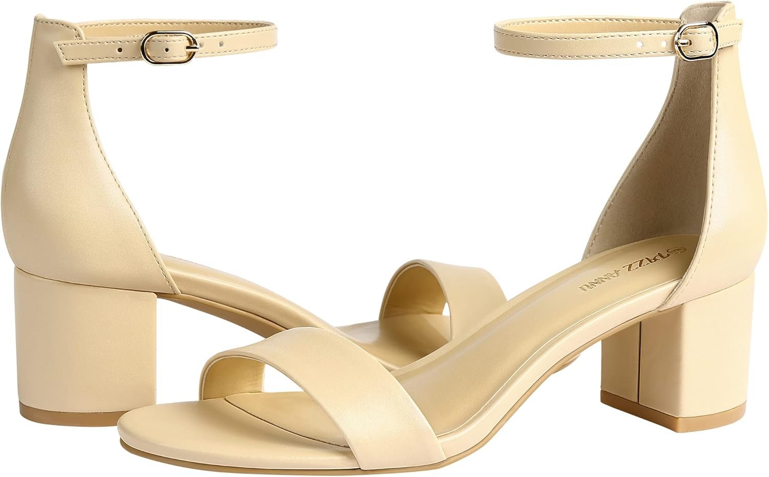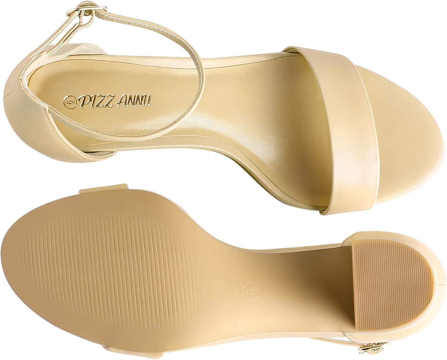 PIZZ ANNU Women’s Low Block Chunky Heels Sandals Comfortable Open Toe Ankle Strap Party Dress Pump Shoes Strappy Buckle Heeled Sandal with 2 Inches Tall Thick Heel Design
