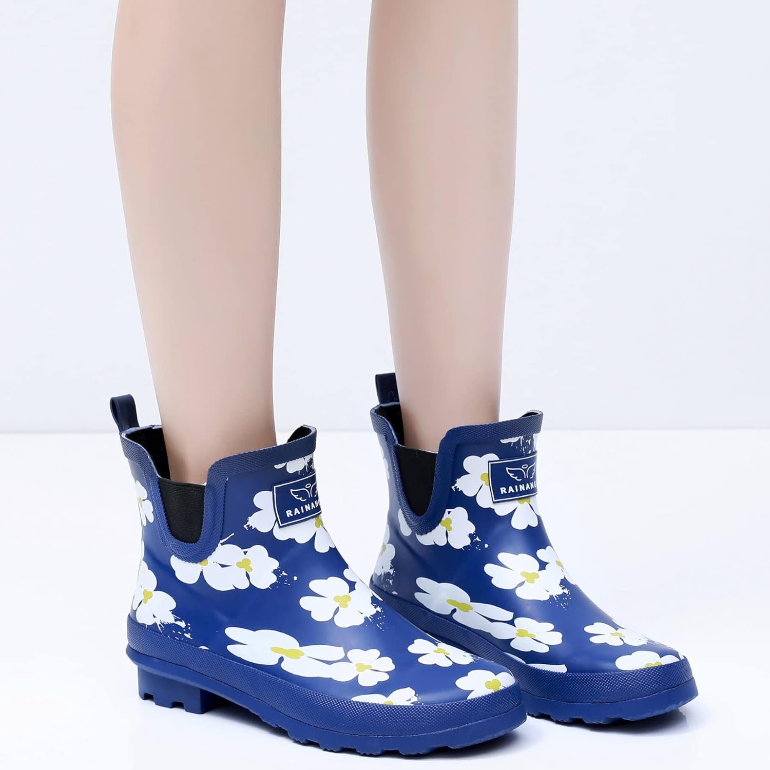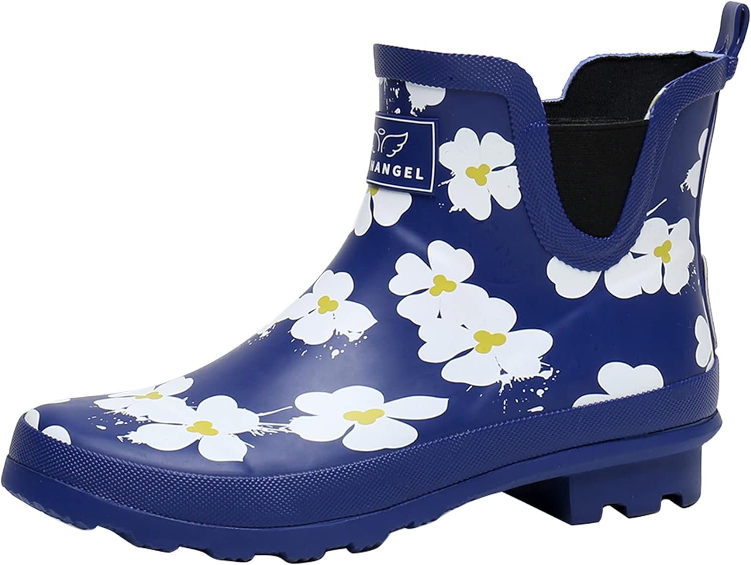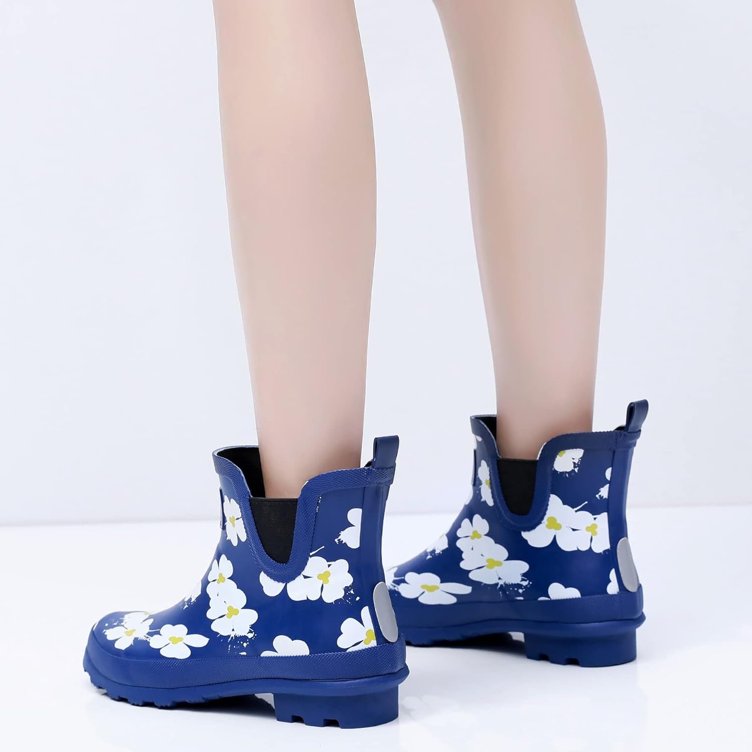 Short Rain Boots for Women, Stylish Rubber Chelsea Boot with Anti-Slip, Waterproof Light Ankle Rain Shoes for Ladies Outdoor Work,Garden Work