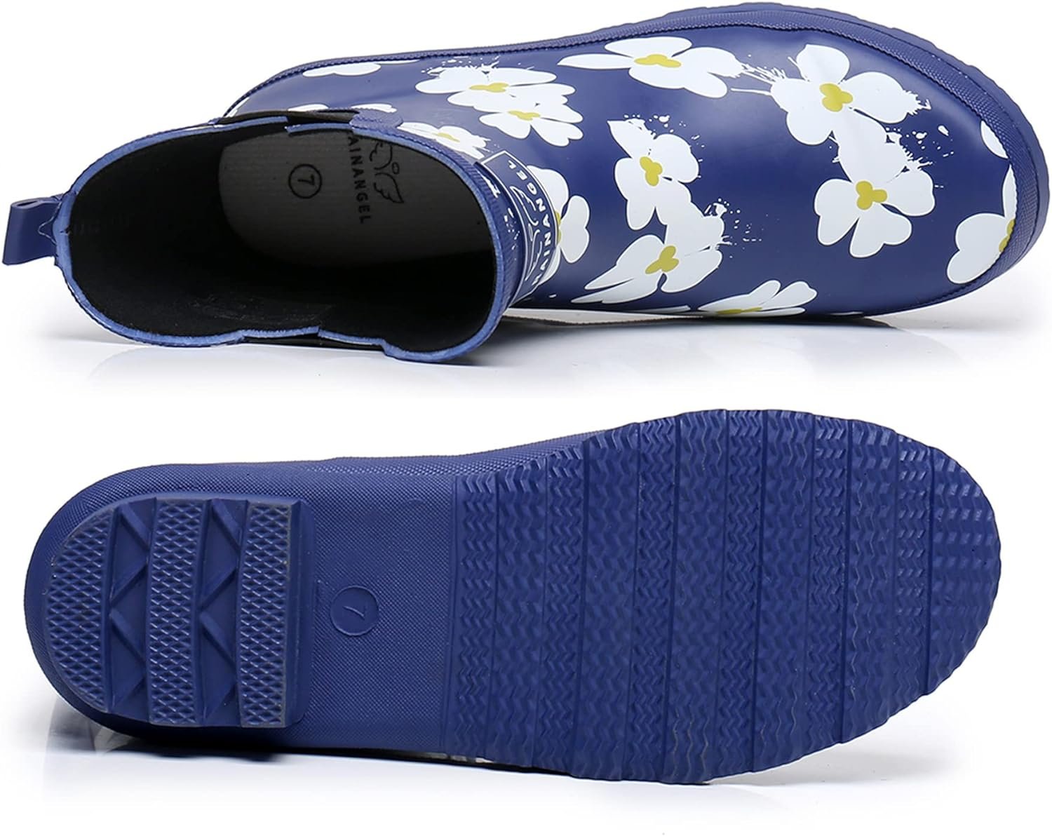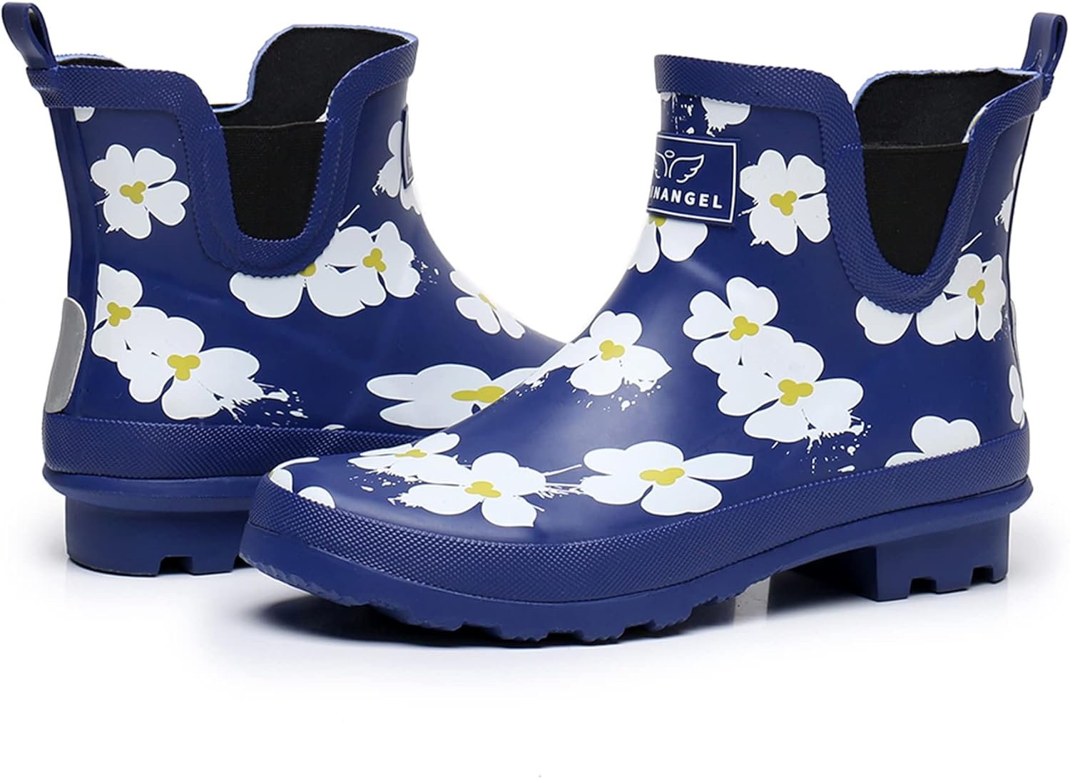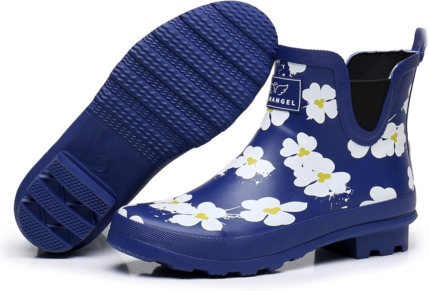 Short Rain Boots for Women, Stylish Rubber Chelsea Boot with Anti-Slip, Waterproof Light Ankle Rain Shoes for Ladies Outdoor Work,Garden Work