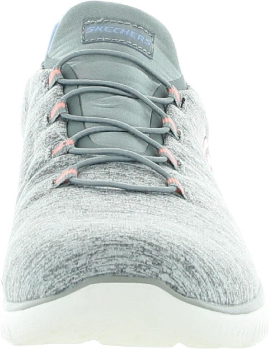 Get right to the sporty style and comfort wearing the Skechers Summits – Quick Getaway shoe. This slip-on sneaker features a soft heathered jersey knit upper with a bungee-laced front and cushioned Memory Foam comfort insole.