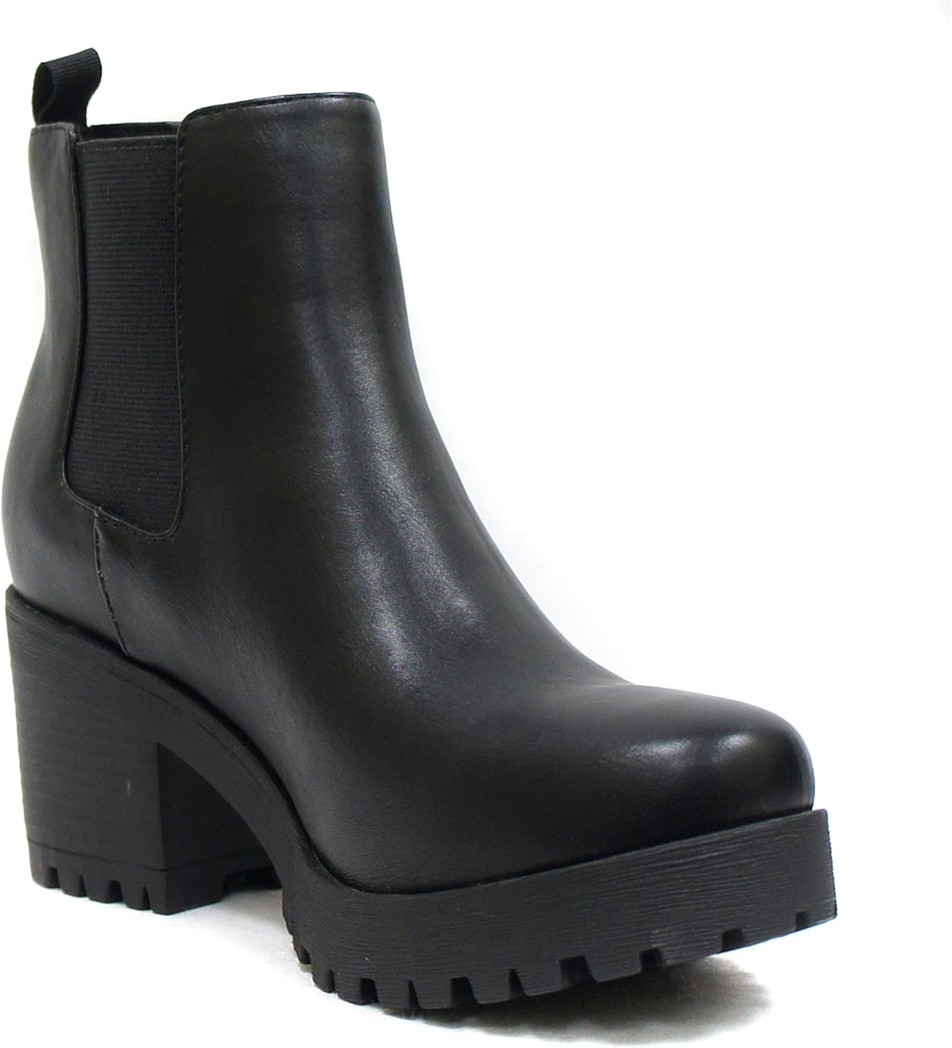 Soda Top Shoes Jaber Ankle Boot W Lug Sole Elastic Gore and Chunky Heel