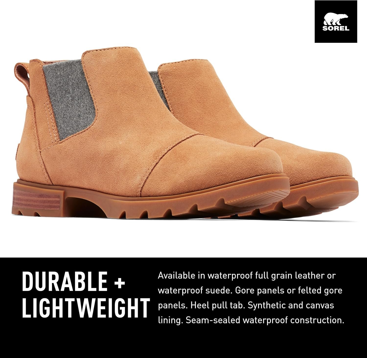 Elevate your style with the Emelie III Chelsea Waterproof Women’s Boots. Walk all day in a timeless silhouette designed for fashion and comfort. These waterproof snow boots are built to withstand any weather. With a durable yet lightweight construction, they keep your feet dry and protected, allowing you to embrace every adventure with confidence. Crafted with premium materials such as leather, synthetic, and canvas, these women’s boots exude quality and ensure long-lasting durability. Step with assurance, knowing you’re wearing boots that can keep up with your active lifestyle. The Emelie III Chelsea Waterproof Women’s Boots provide full traction and stability on any surface. The molded Evertread rubber outsole guarantees a secure grip, allowing you to walk with ease and grace. Embrace a versatile design that transcends time. The Emelie III Chelsea Waterproof Women’s Boots feature a classic silhouette with a modern twist, making them the perfect choice for a new go-to boot. Pair them with any outfit to effortlessly elevate your style. Choose quality, choose a style, and choose comfort. Choose the Emelie III Chelsea Waterproof Women’s Boots as your trusted companion for every step you take.