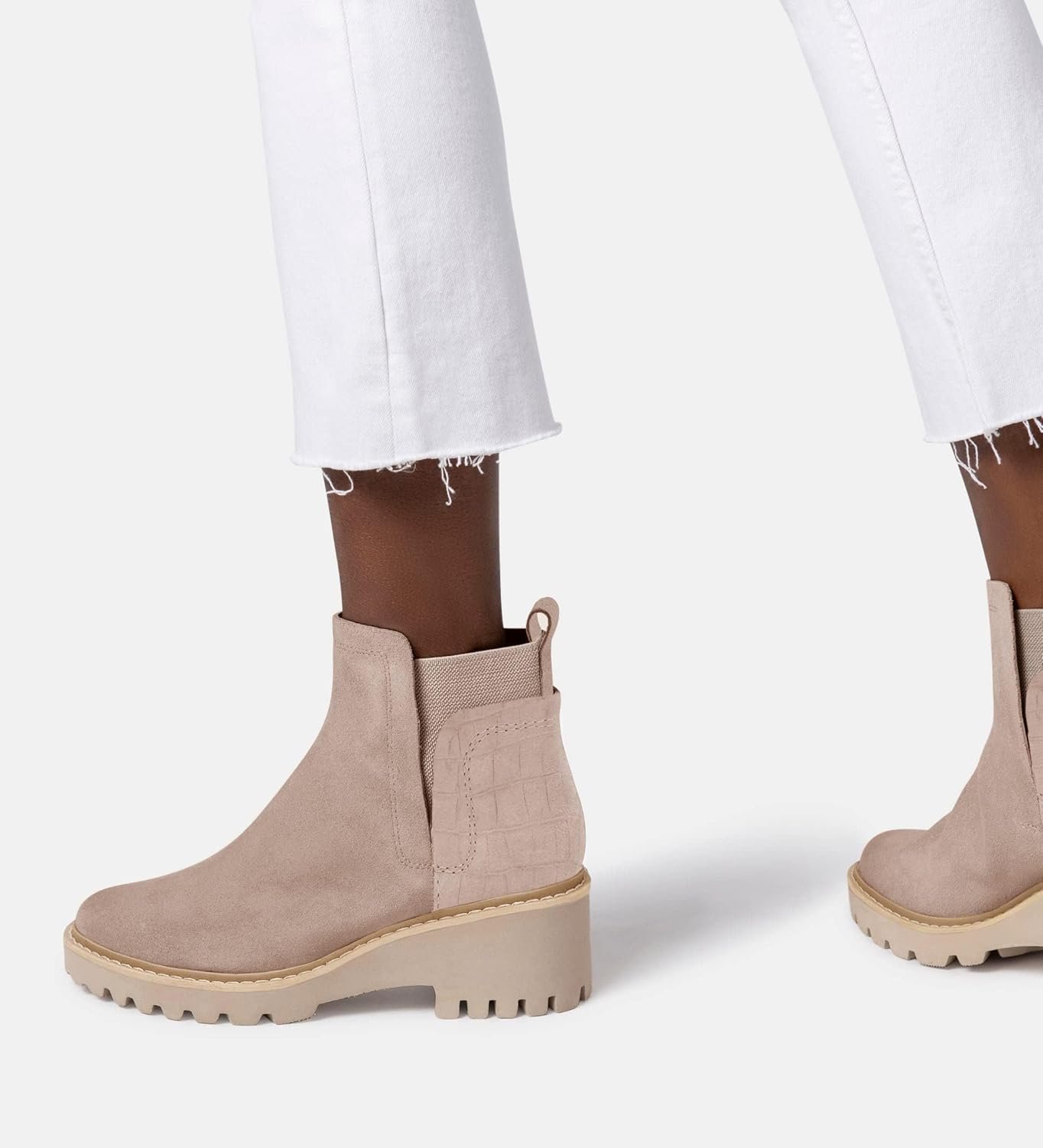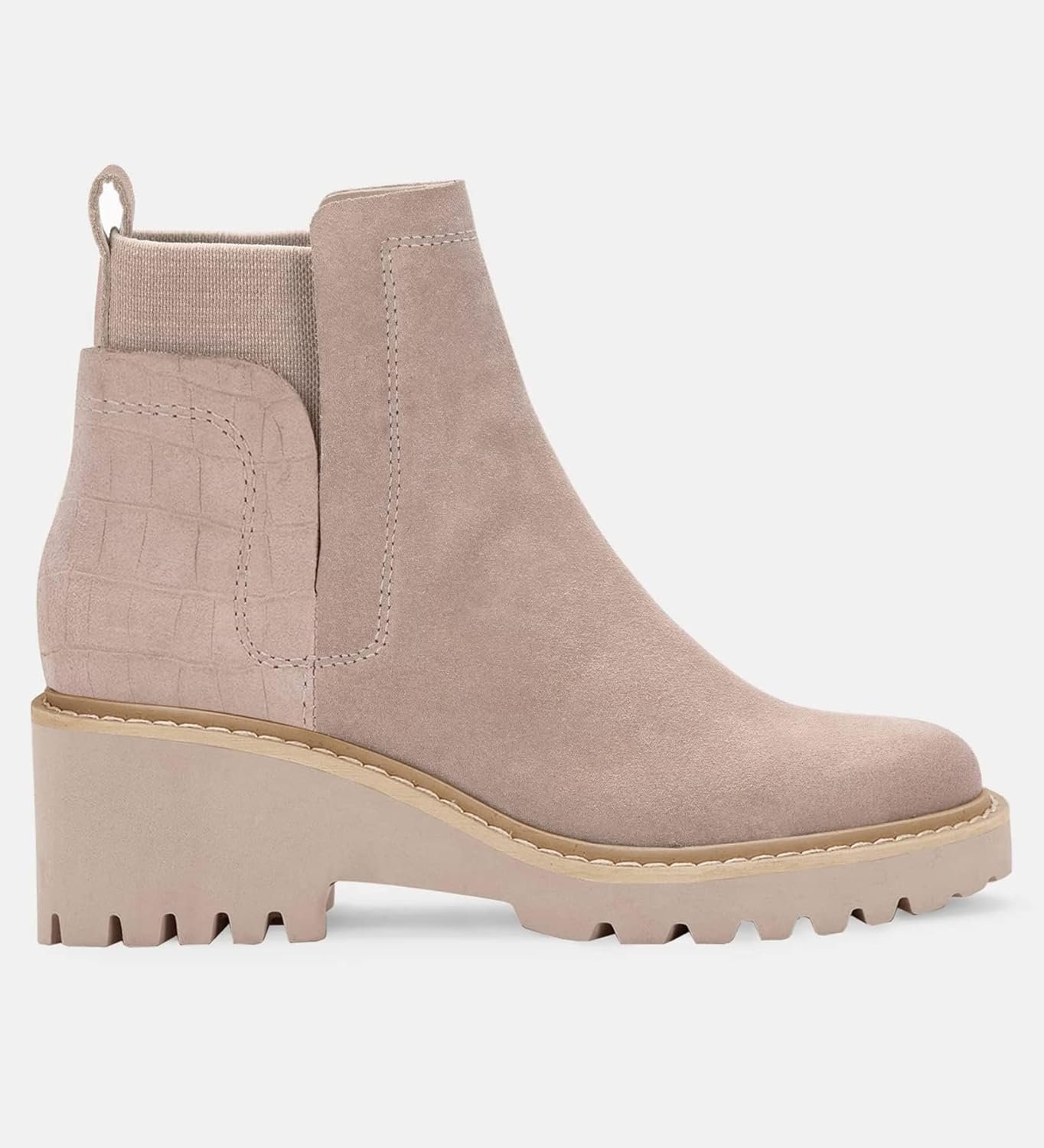 Trish Lucia Womens Platform Lug Sole Chelsea Boots Ankle High Chunky Block Heel Non-Slip Suede Leather Slip on Combat Fashion Booties