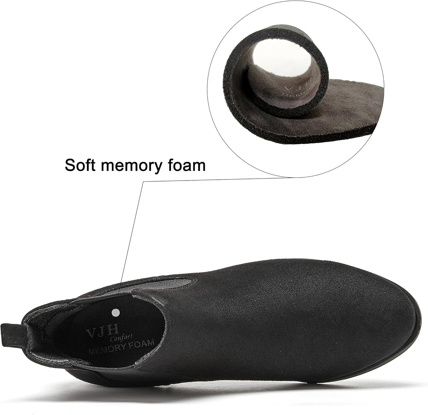 VJH confort Women’s Slip on Ankle Boot, Western Almond Round Toe Low Heel Elastic Chelsea Bootie