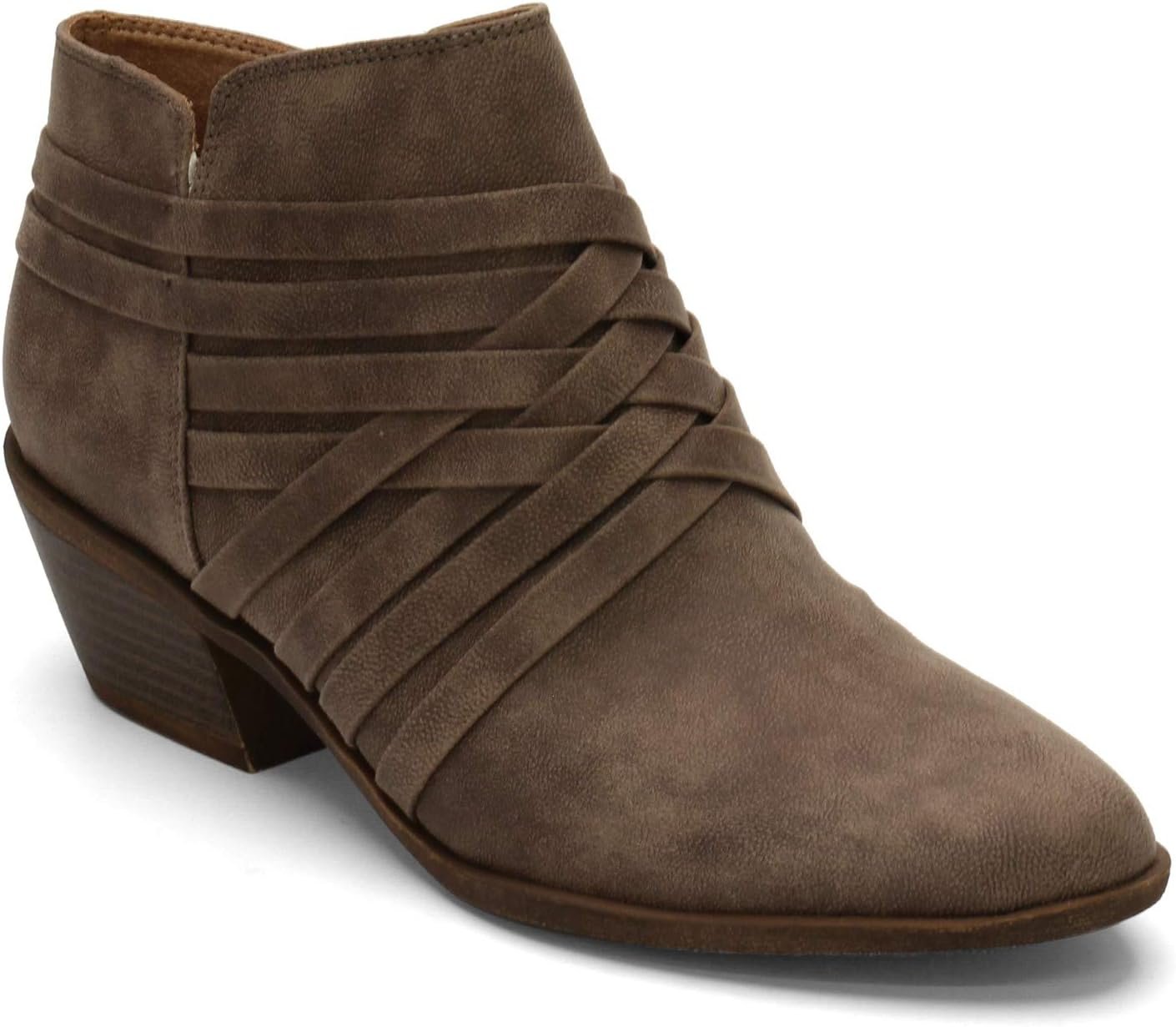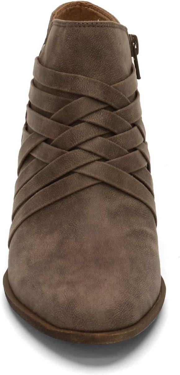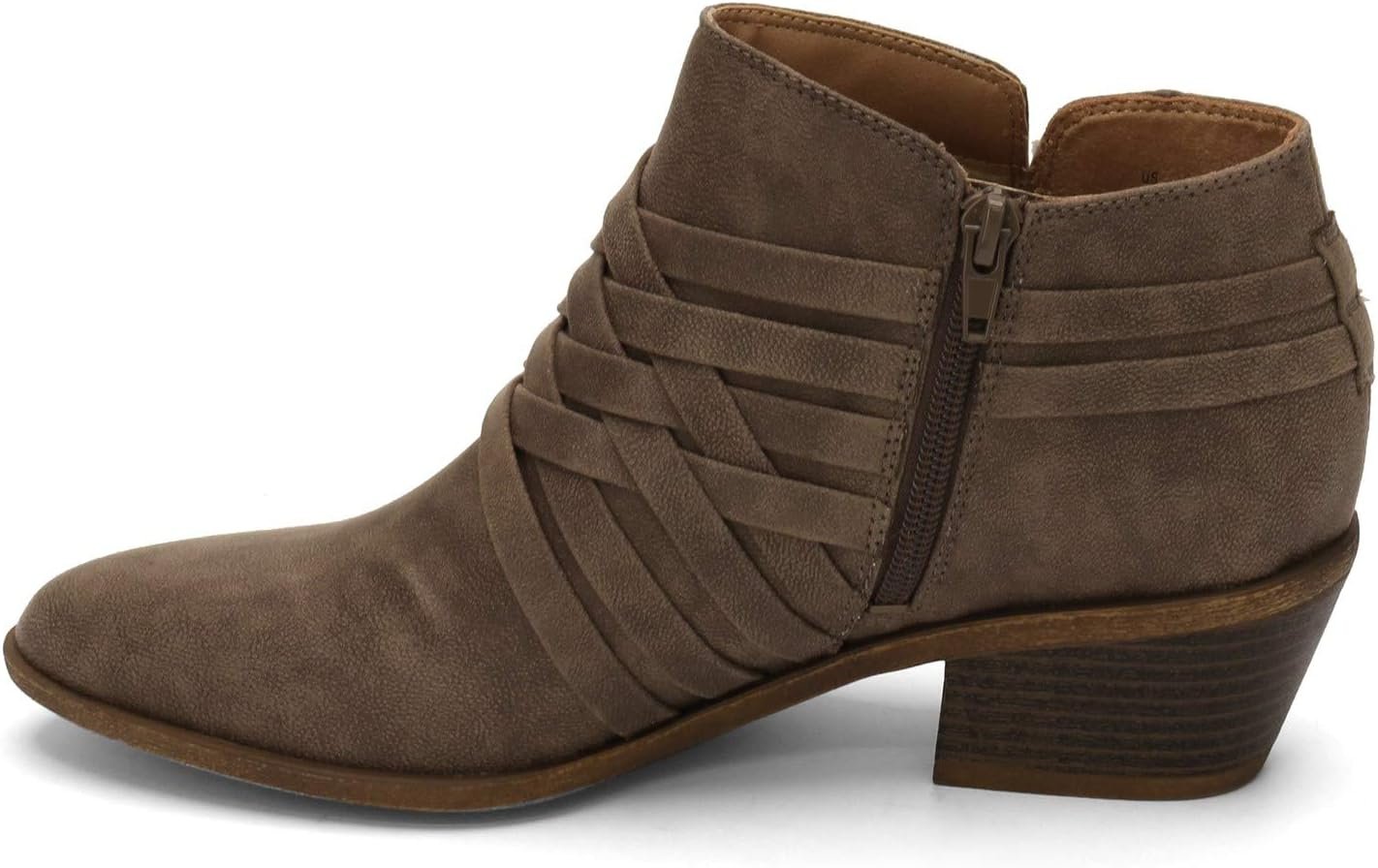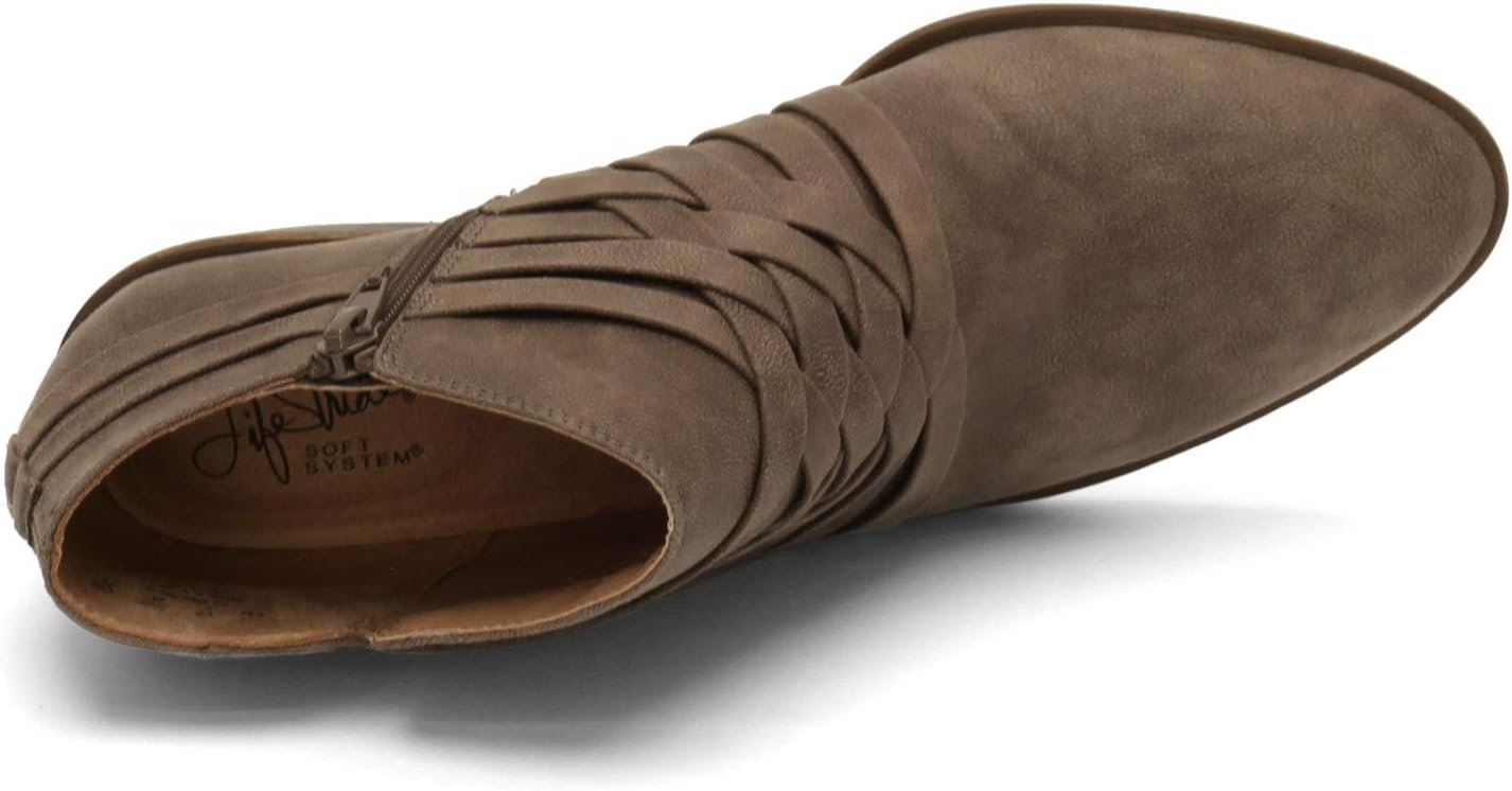 Get that western look in the stylish and comfortable prairie bootie from LifeStride. Faux leather with round toe, side zip closure, crisscrossing interwoven strap detail. Soft system comfort package provides all-day support, flex, and cushioning. Traction sole provides you with extra stability. Just right height 1 and 3/4 inch heel.