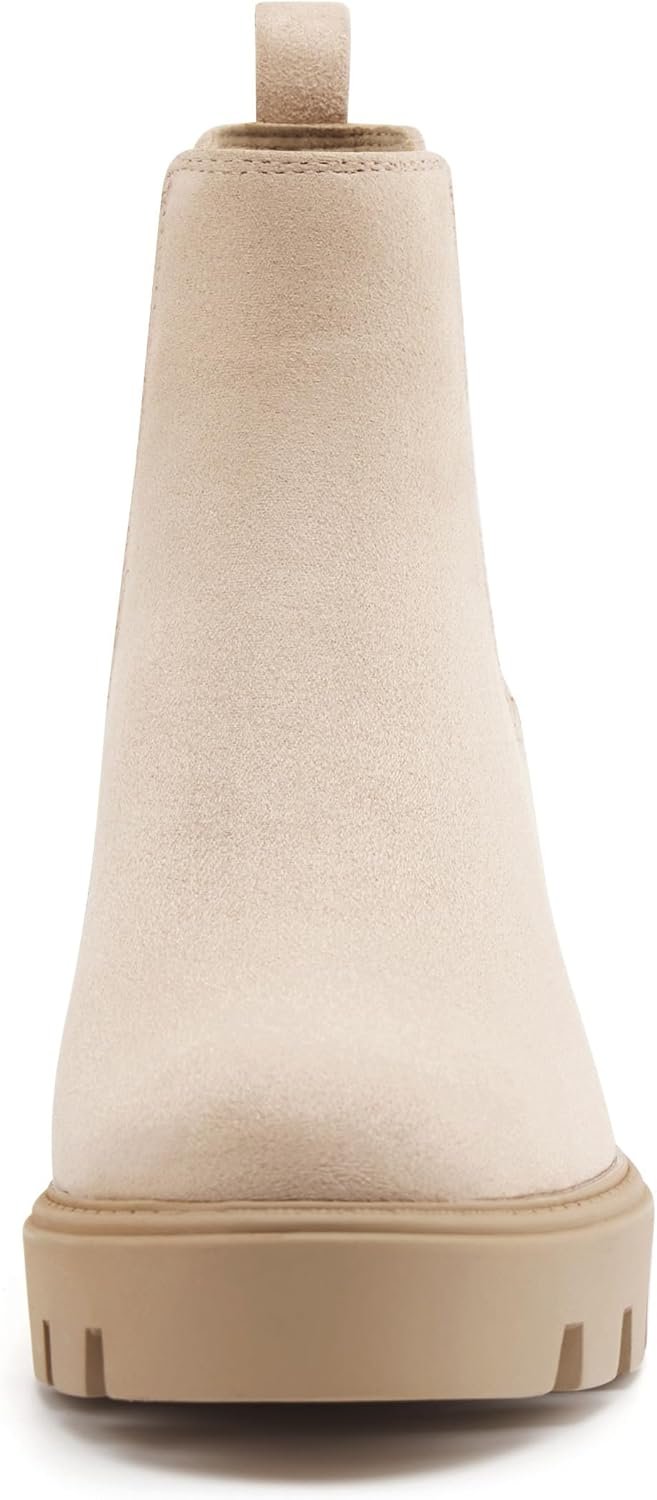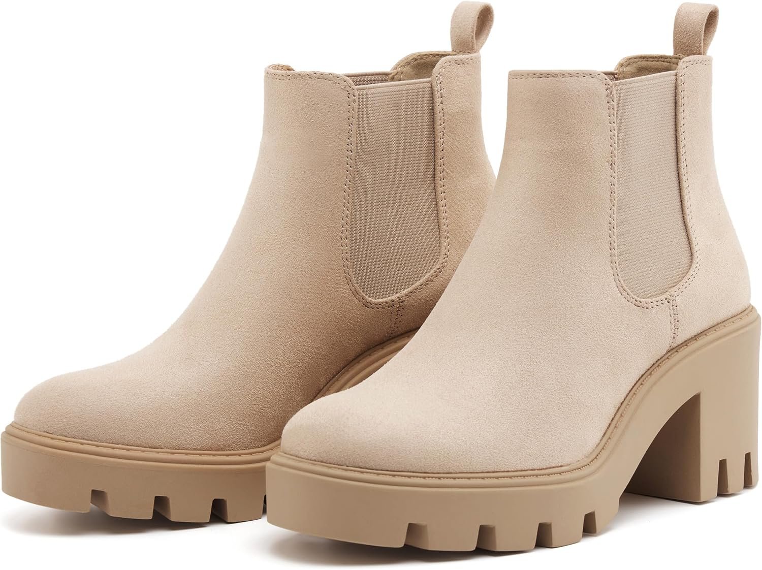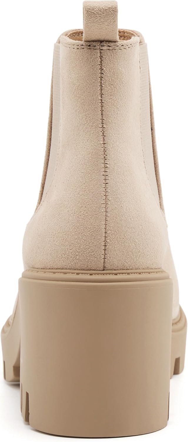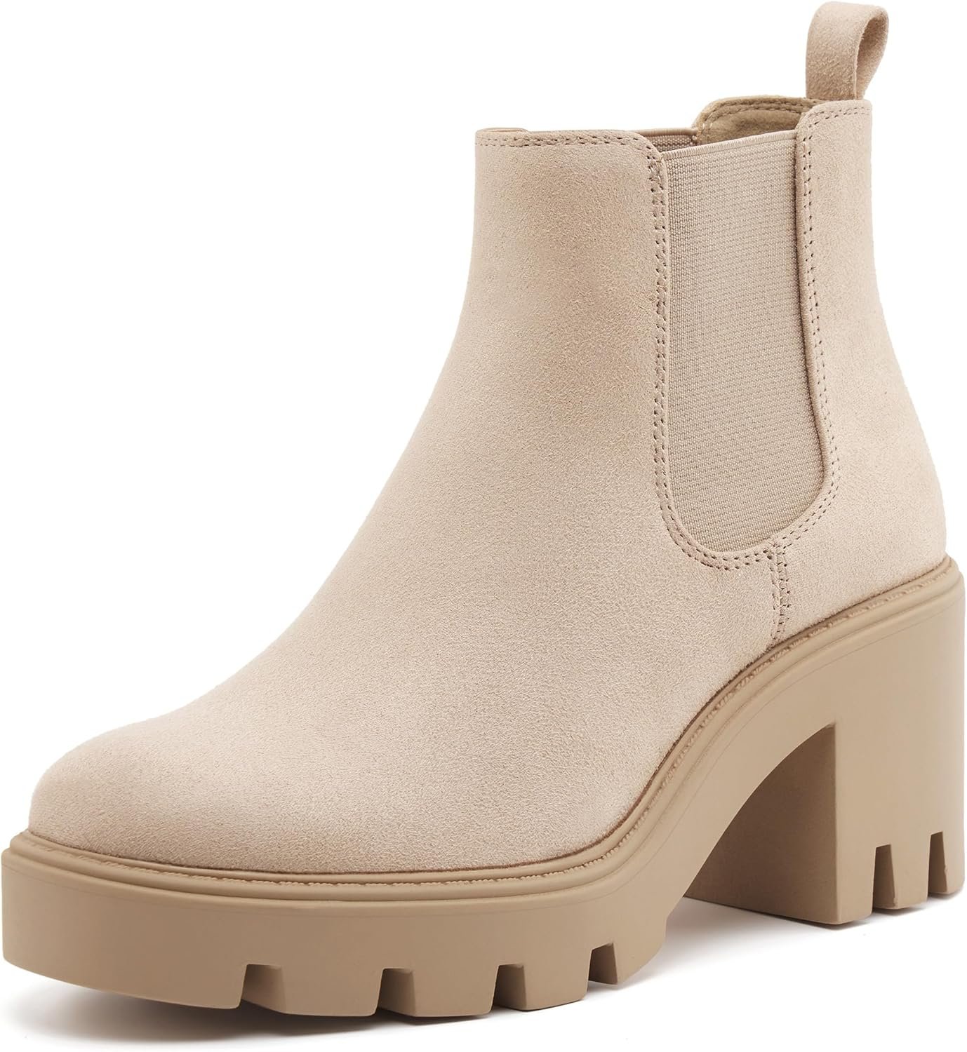 Women’s Chelsea Boots Fashion Platform High Heel Ankle Booties Round Toe Casual Elastic Chunky Block Heel Boots