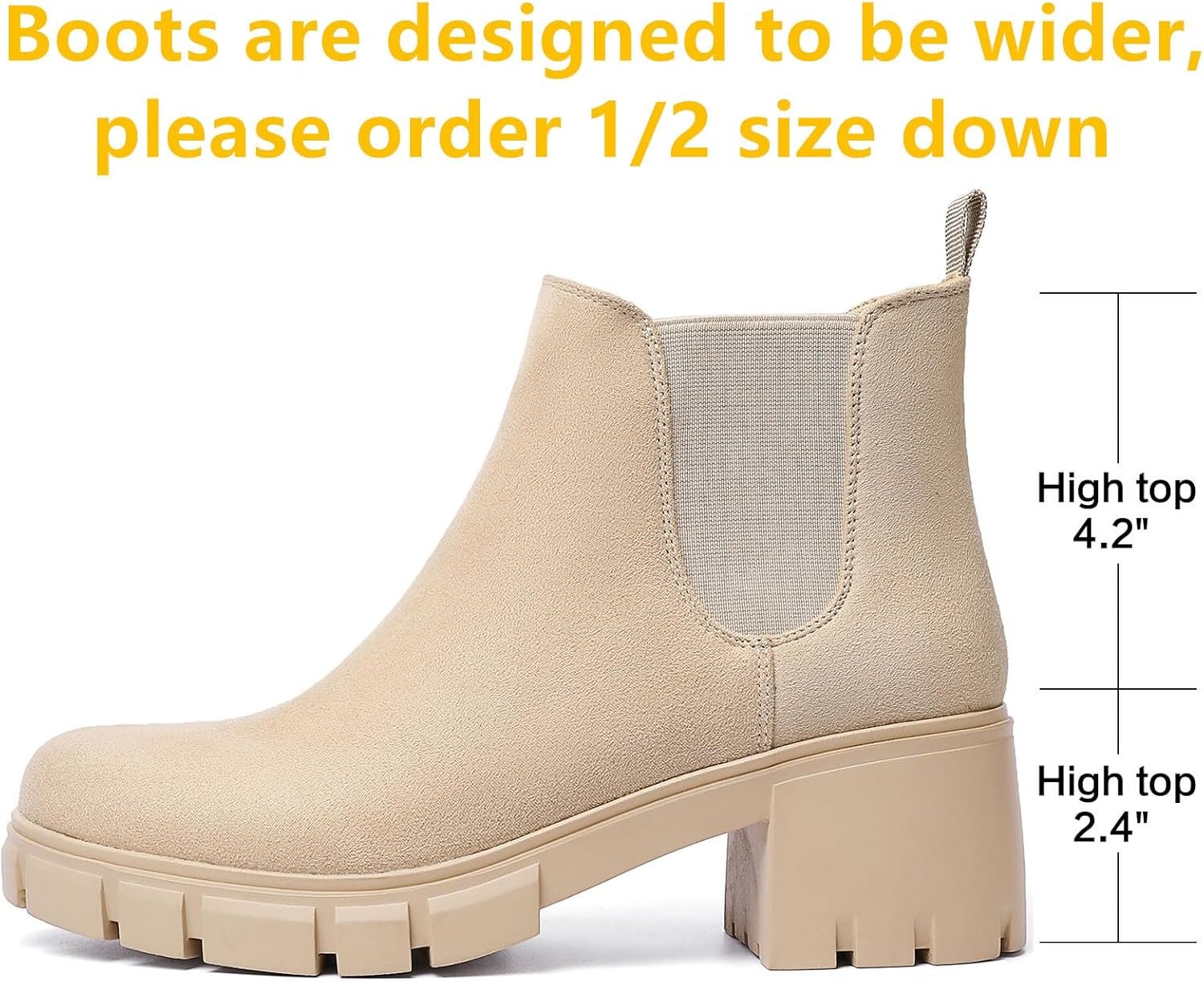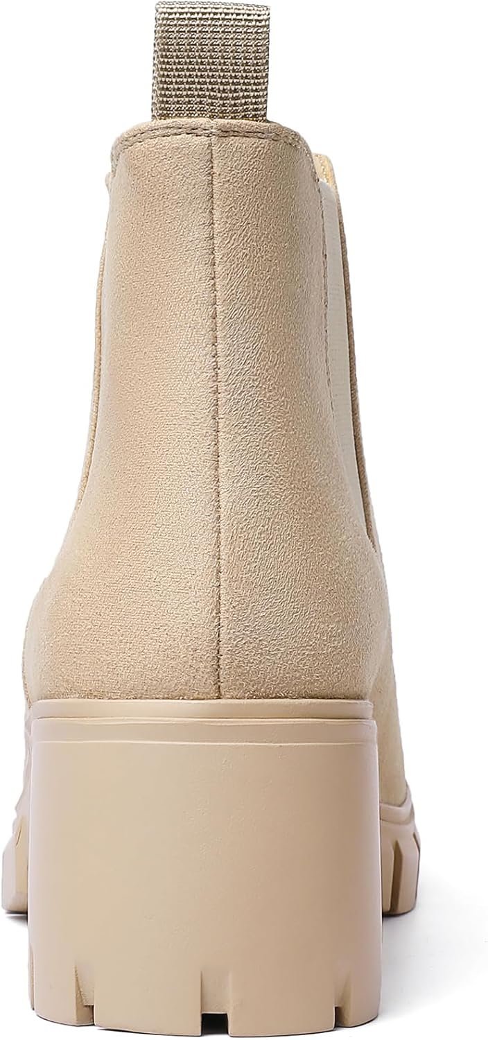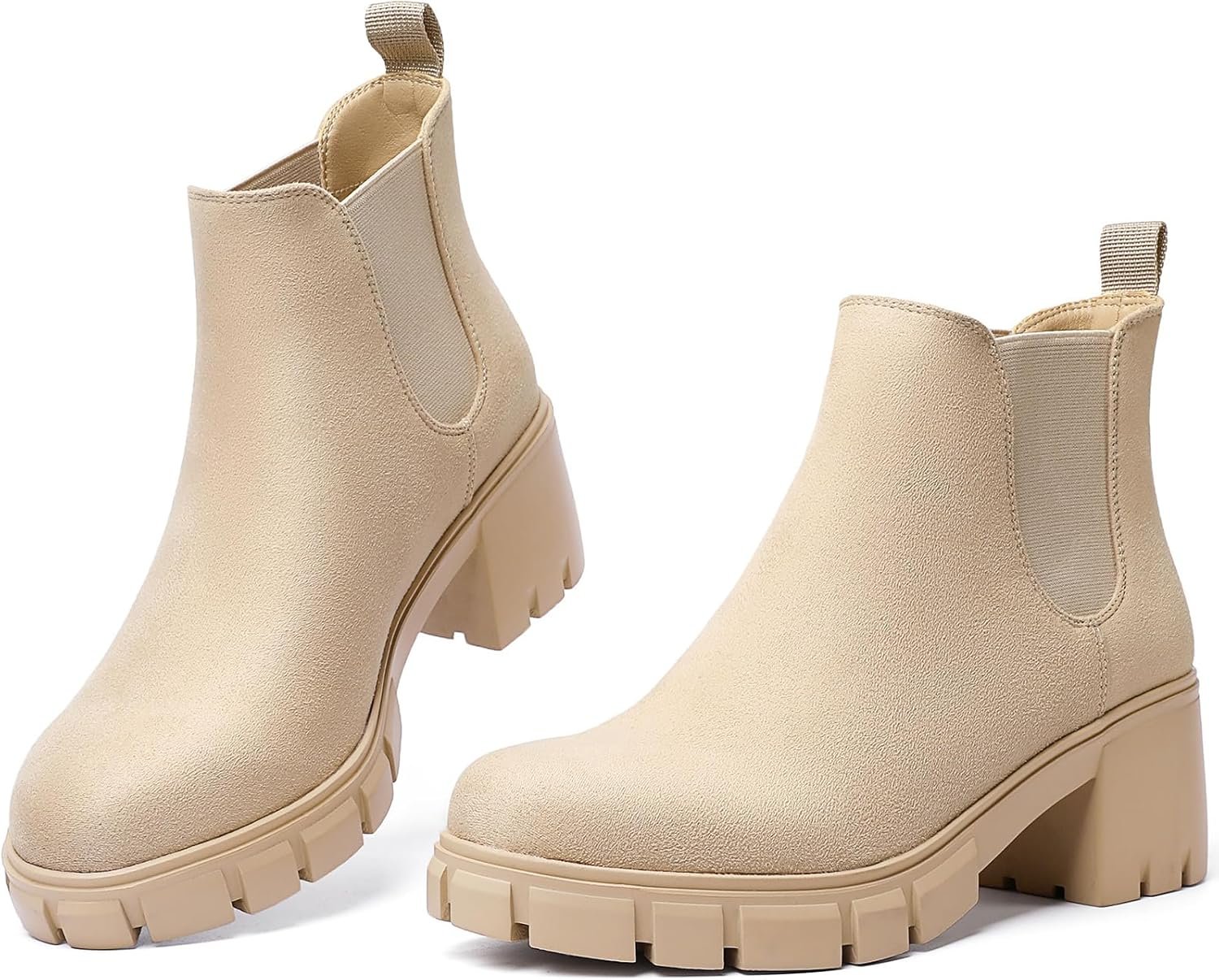 Women’s Chelsea Boots Lug Sole Chunky Heel Slip on Ankle Booties