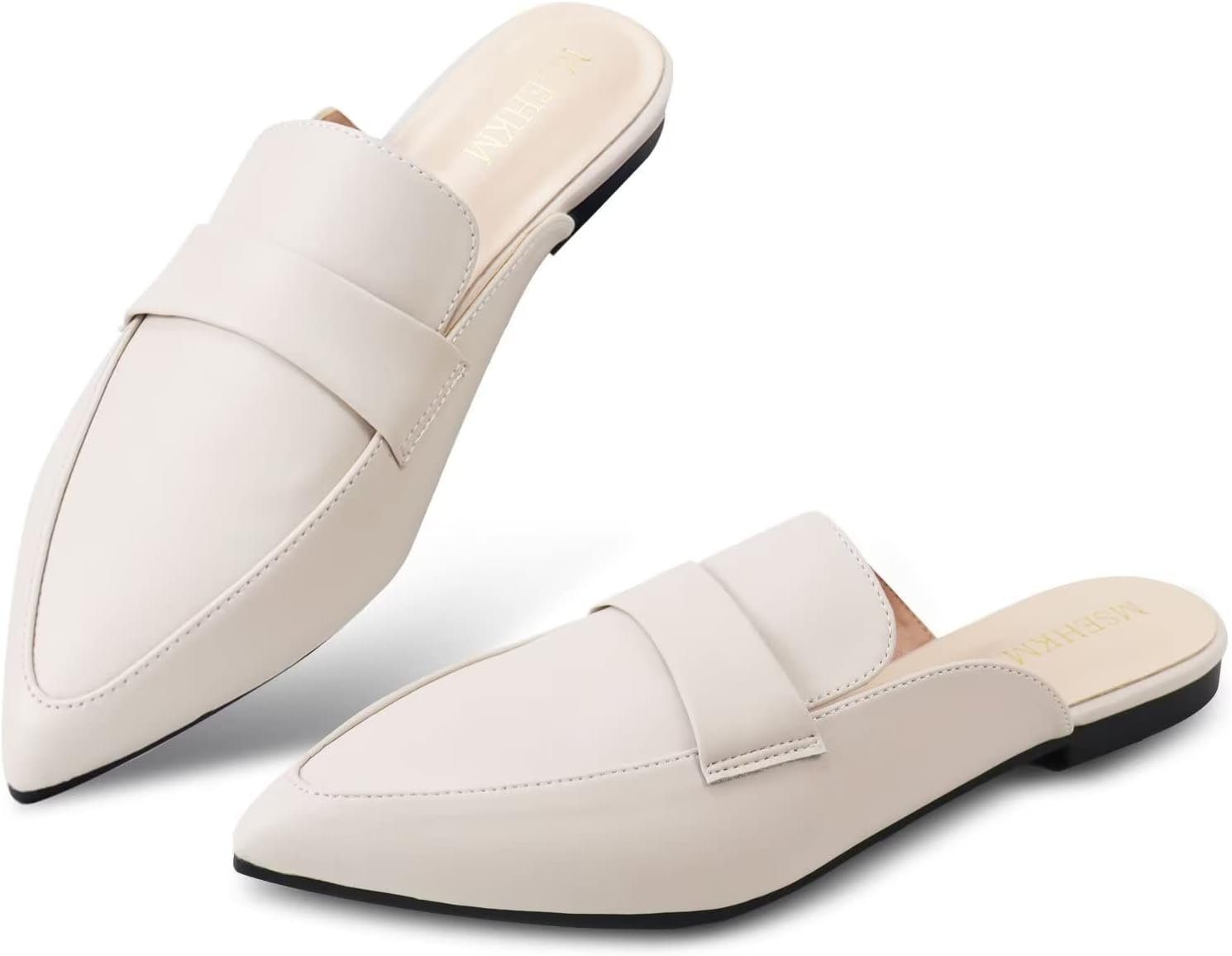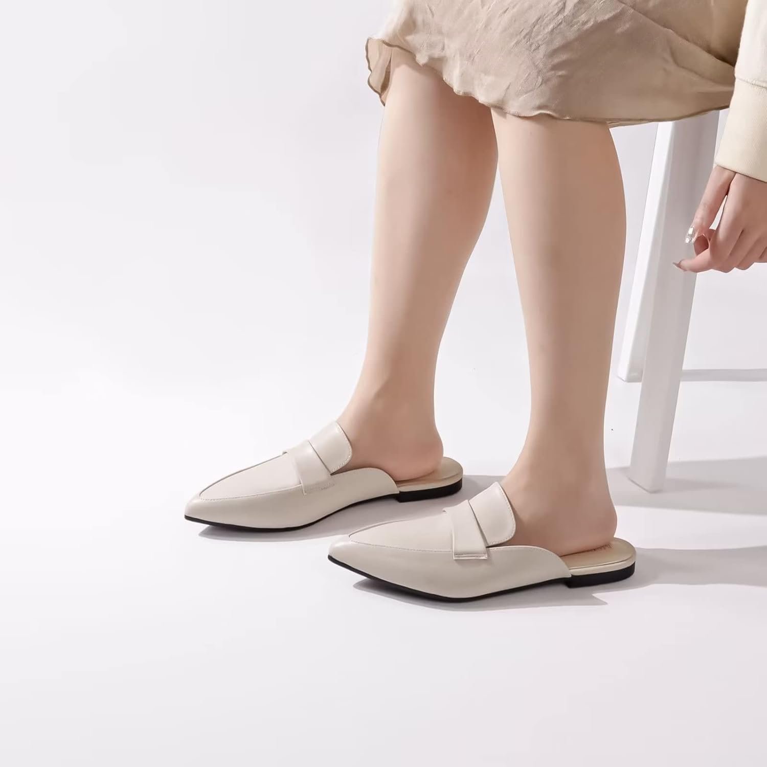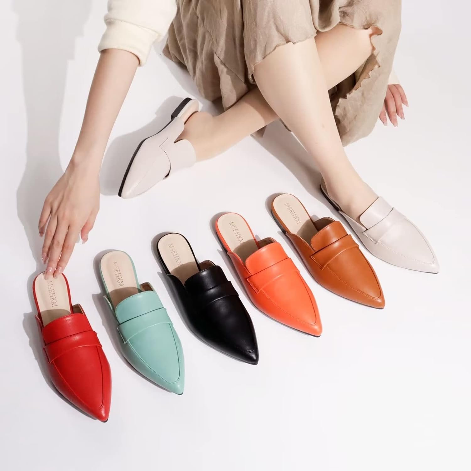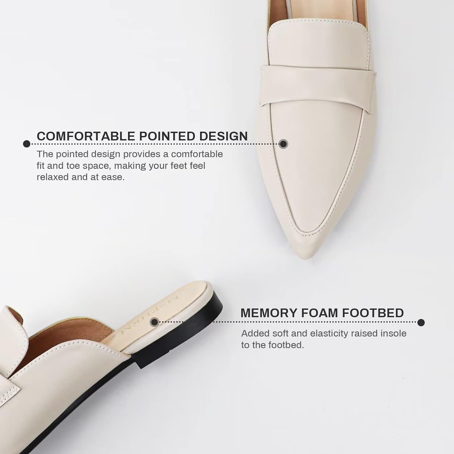 Women’s Mules Flats- Classic Pointed Toe Design with Comfortable Fit for Everyday Wear- Penny/Leather Slippers Loafers
