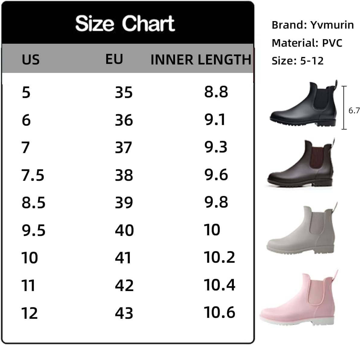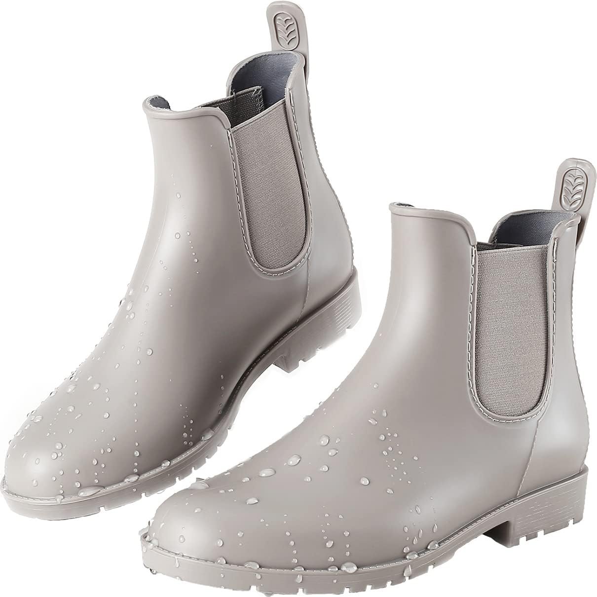 Women’s Short Rain Boots Waterproof Anti Slip Rubber Ankle Chelsea Booties